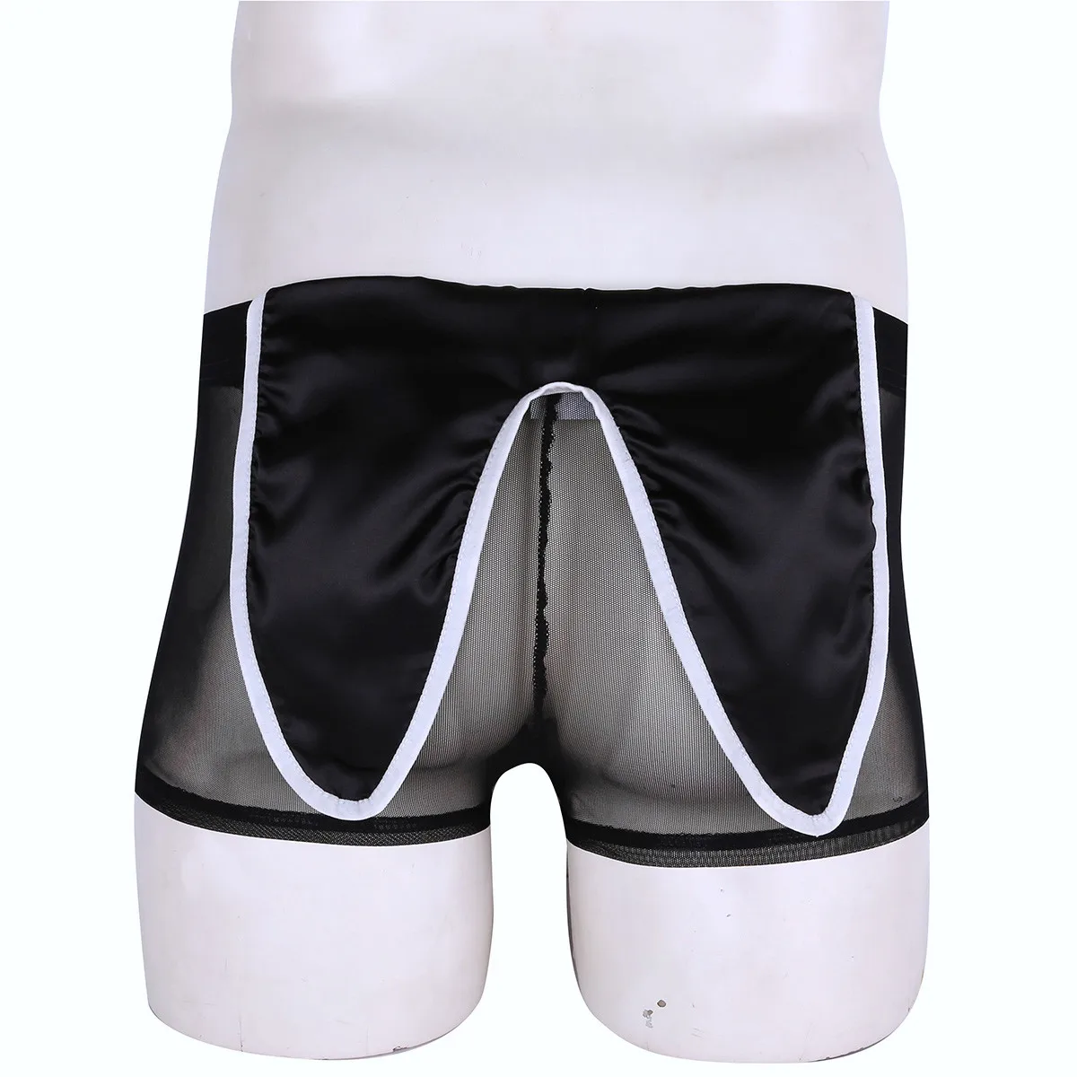 Мужской комплект нижнего белья, костюм для взрослых, аксессуары, воротник-бант, манжеты с прозрачными сетчатые трусы-боксеры, шорты, нижнее белье с заячьими ушками для Хэллоуина