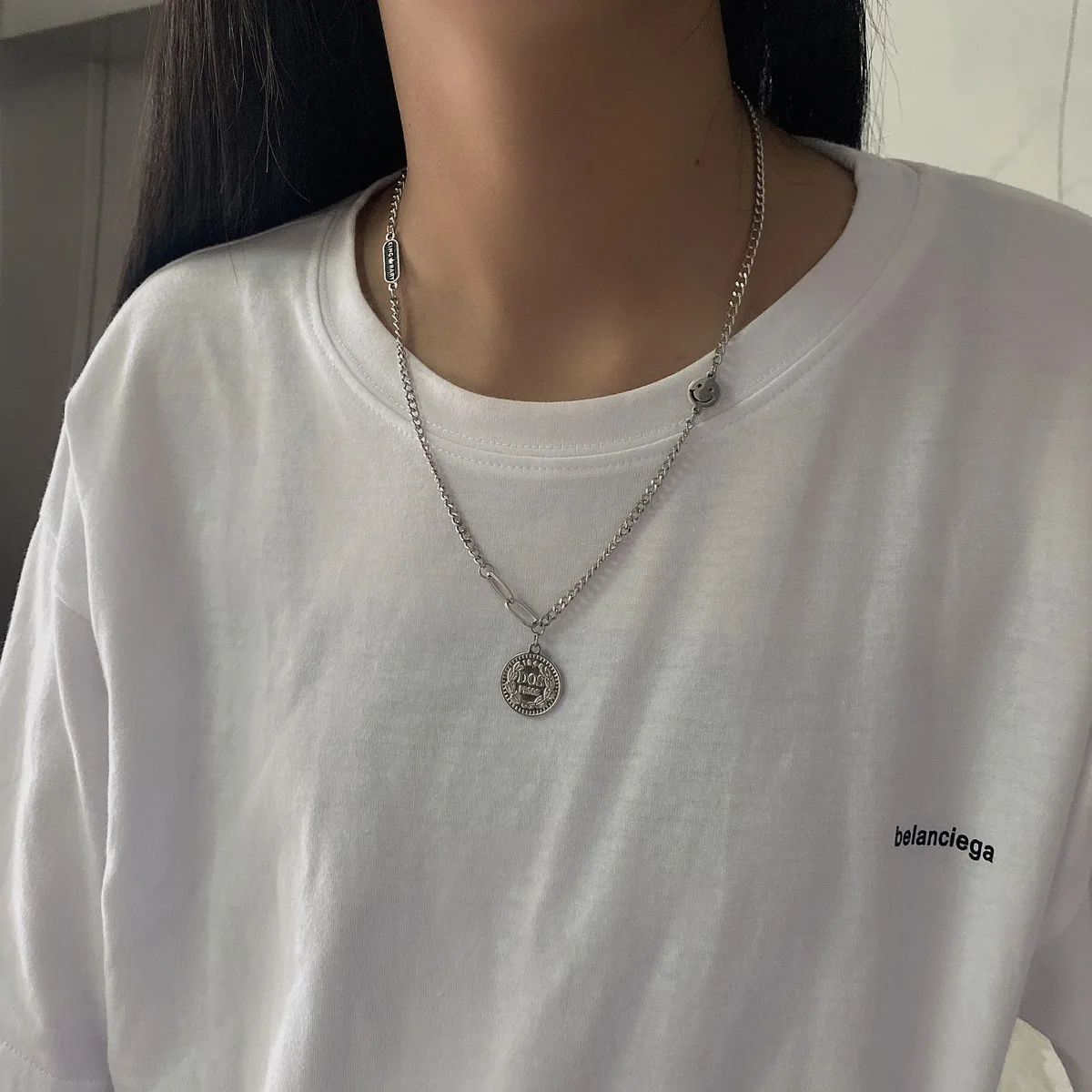 Ожерелье с подвеской в стиле панк для женщин и девушек, уникальное дизайнерское асимметричное ожерелье с буквенным принтом из титановой стали, ювелирное изделие