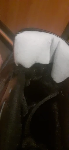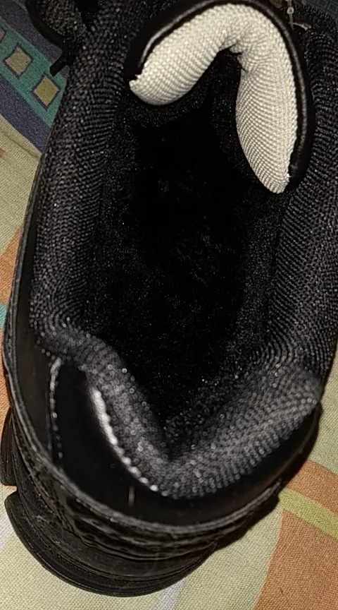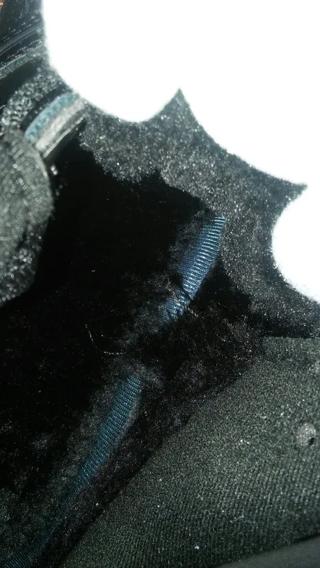 На одном ботинке не проклеены слои подошвы, поэтому при ходьбе появляется неприятное посвистывание. Ну и вода попадает в эту дырочку. Сразу не заметил, а теперь поздно спорить, да и как это показать.