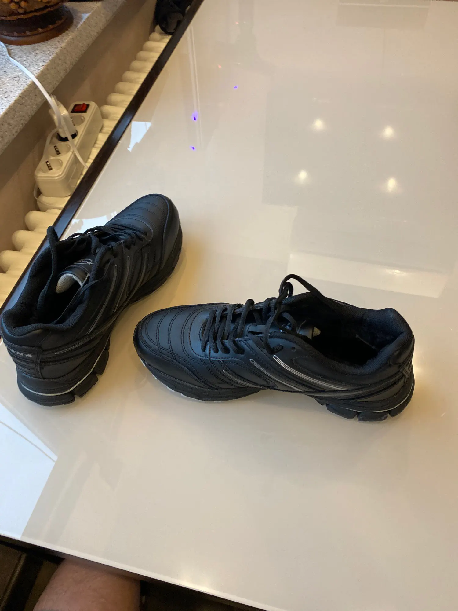 быстрая доставка, запах конечно ужасный но быстро выветривается и кроссовки тёплые, но при -15 если стоять на месте, ноги всё-таки подмерзают.