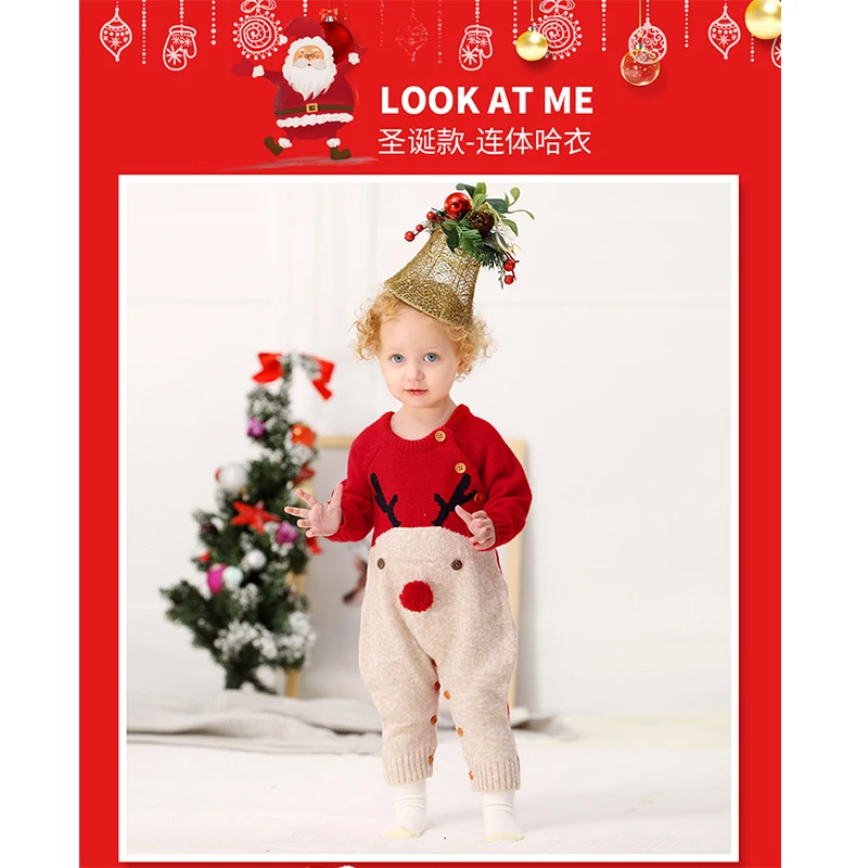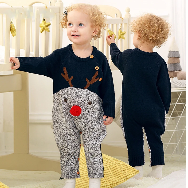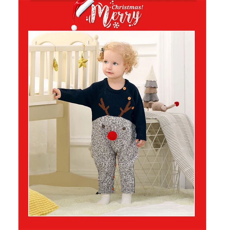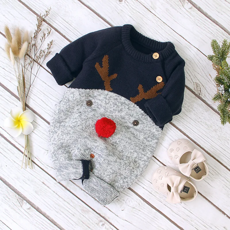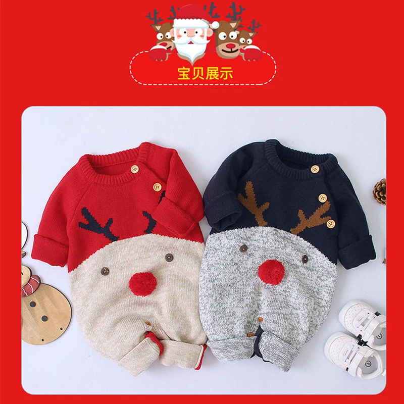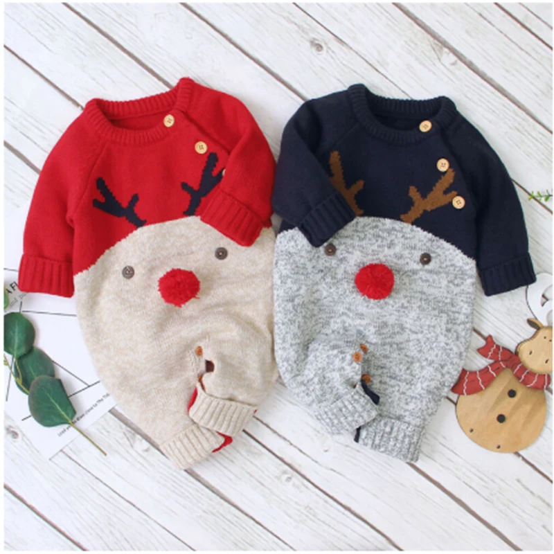 Новый Зимний Рождественский Вязаный комбинезон для новорожденных девочек комбинезон свитер теплая Осенняя шерстяная Рождественская одежда