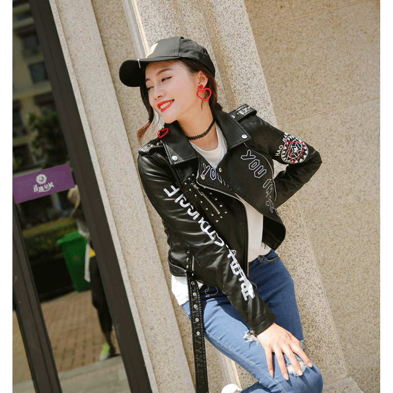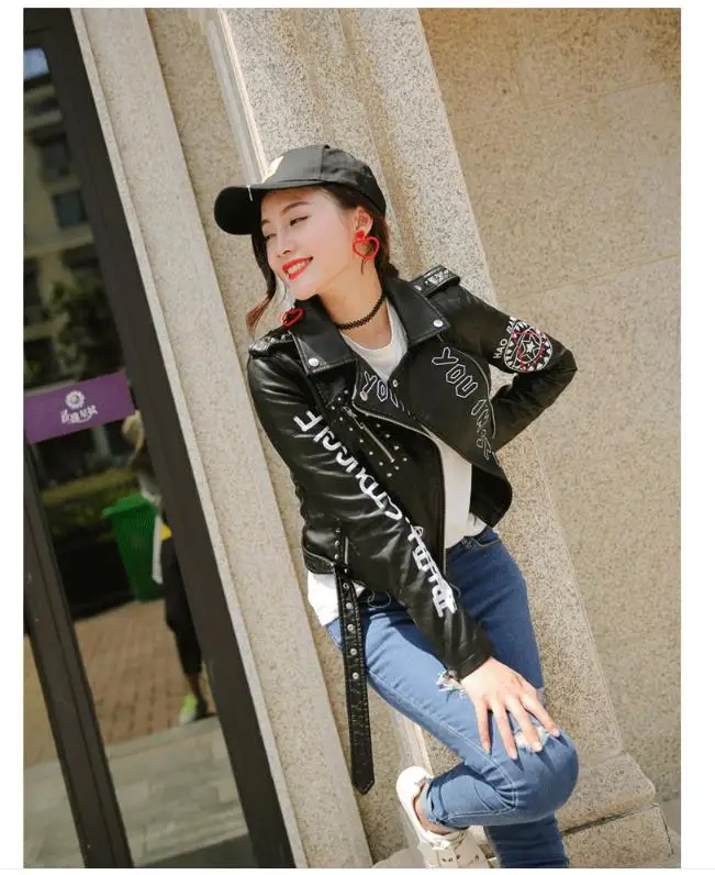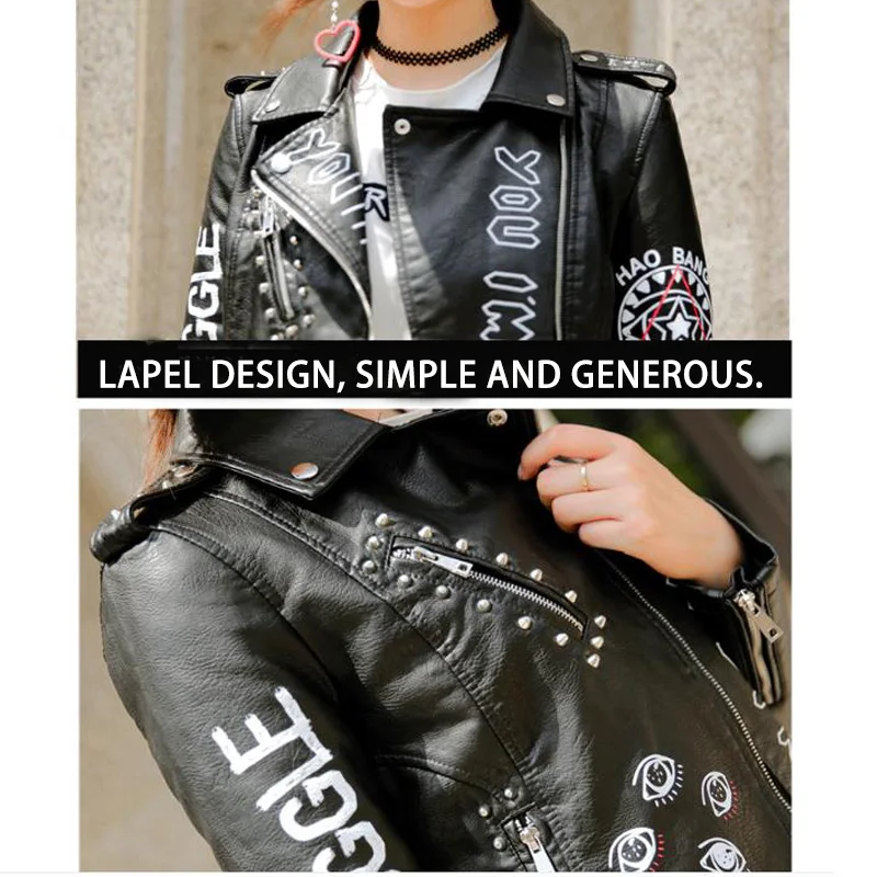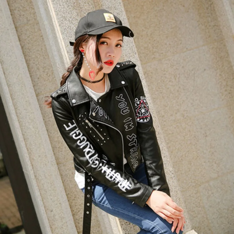 Куртка женская из искусственной кожи, с заклепками, на молнии, с 3D...
