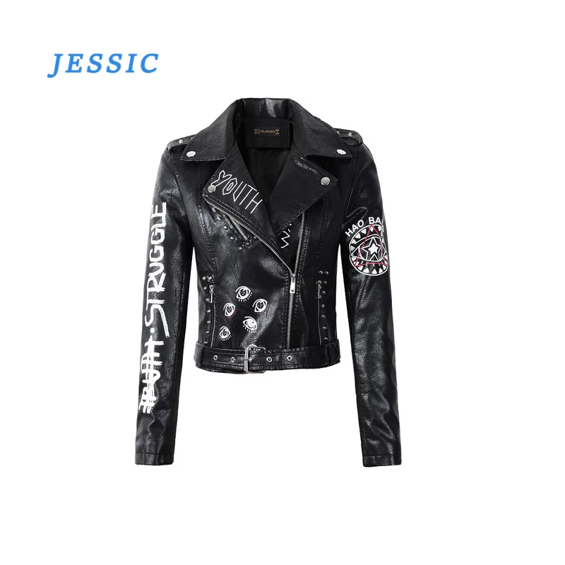 LY VAREY LIN Женская байкерская куртка из искусственной кожи с прин...