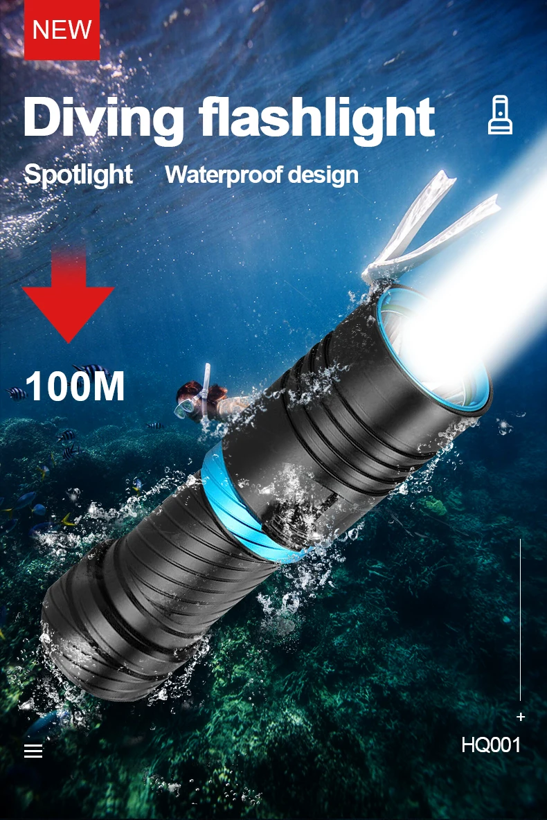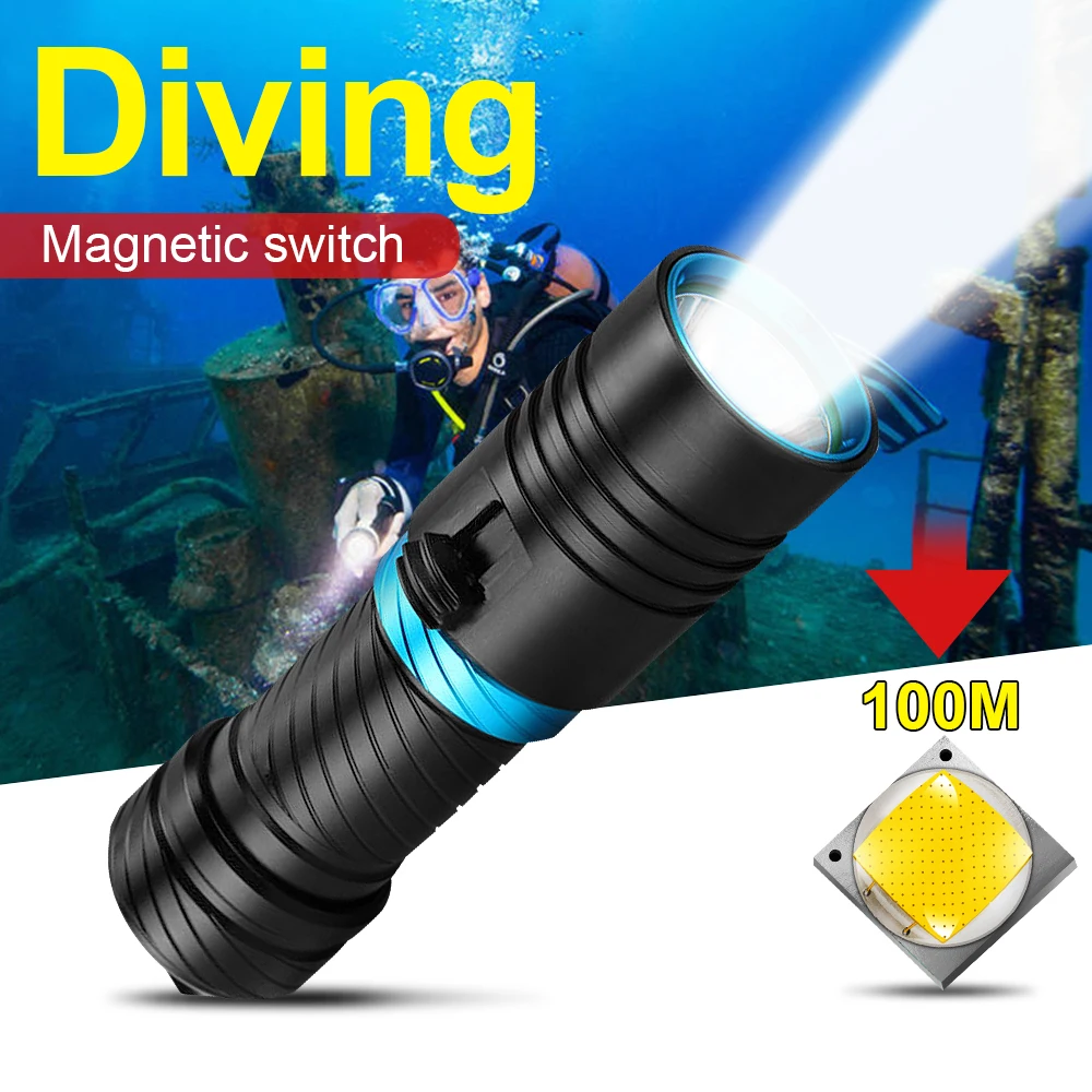Профессиональный фонарь для дайвинга IPX8 100 м фонарик для дайвинга 18650 26650 подводная лампа перезаряжаемый светодиодный фонарь водонепроницаемый фонарик