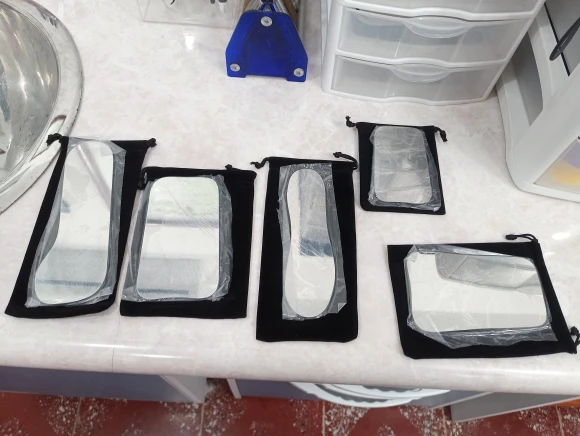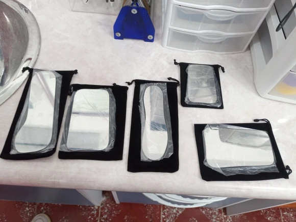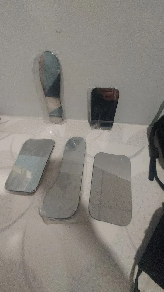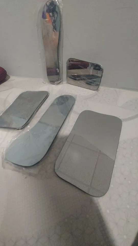 Я абсолютно не рекомендую покупать этот продукт. Зеркала поцарапаны. Они поставляются с прозрачной пленкой, наклеенной на поверхность стекла, обернутой весь продукт. При снятии оставляет некоторые Нечеткие следы на зеркалах. Если вы моете их и очень осторожно пытаетесь удалить их, зеркала, которые уже входят, поцарапаны, не имеют идеальной поверхности. Голос 0. Трата денег, слава Богу, они дешевые. Не покупай это.