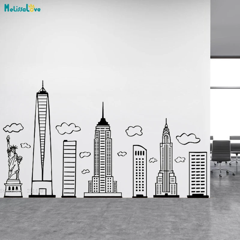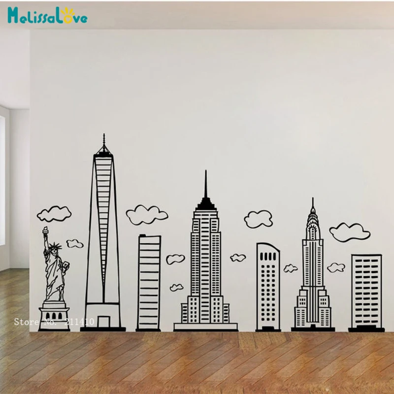 Нью-Йорк силуэт наклейки на стену Спальня гостиной настенные Арт пе...
