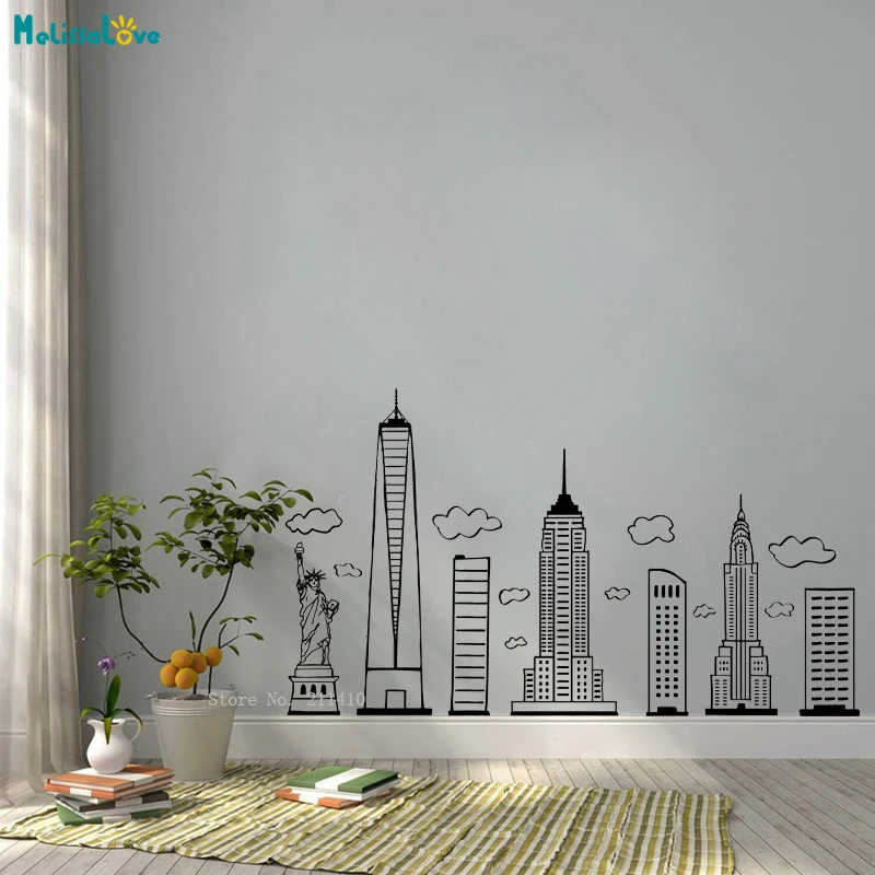 Город Силуэт узор украшения стены наклейка городской пейзаж Нью-Йор...