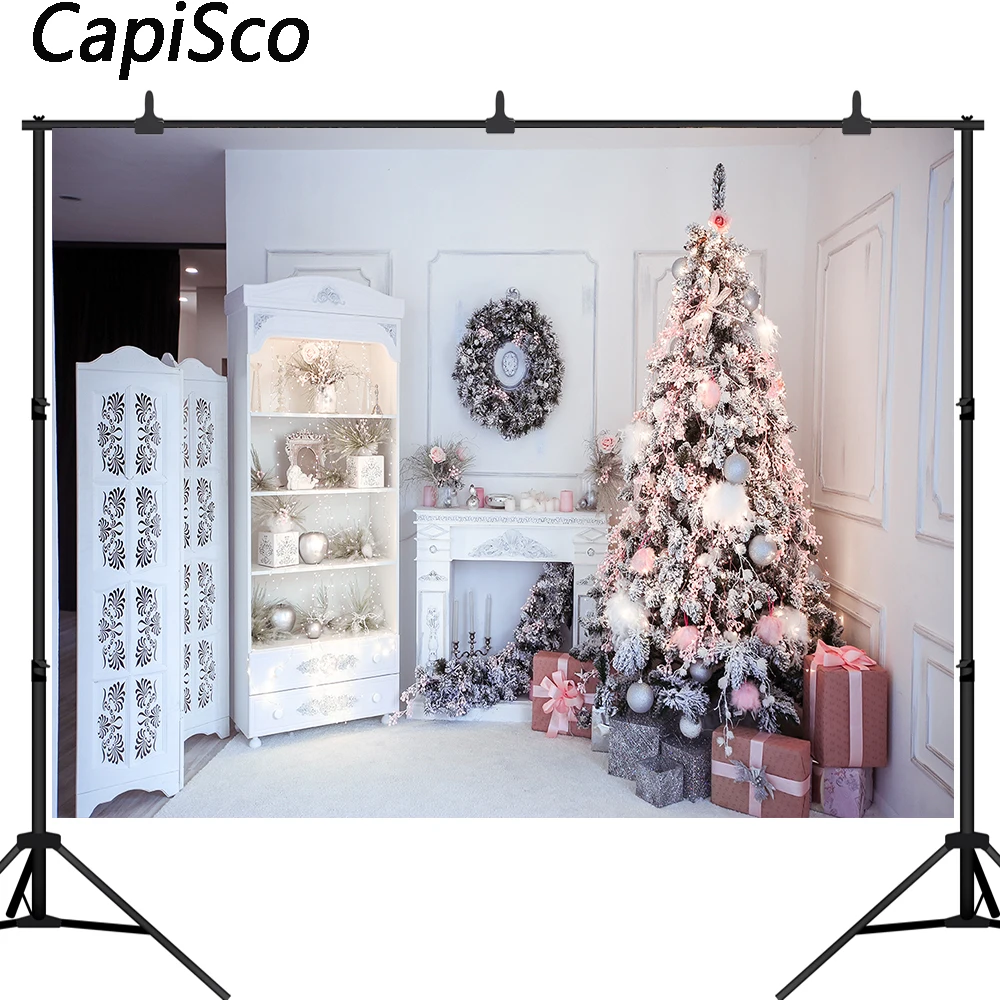 Каписко фоны для фотосъемки Рождественская елка камин Подарки Игруш...