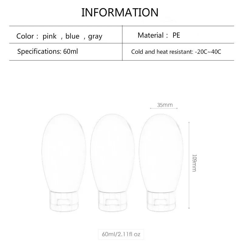 Набор 60 мл пустой силиконовый дорожный набор Упаковочный пресс-бутылка для лосьона, шампуня, ванны, маленькие образцы контейнеров могут быть доставлены на борт