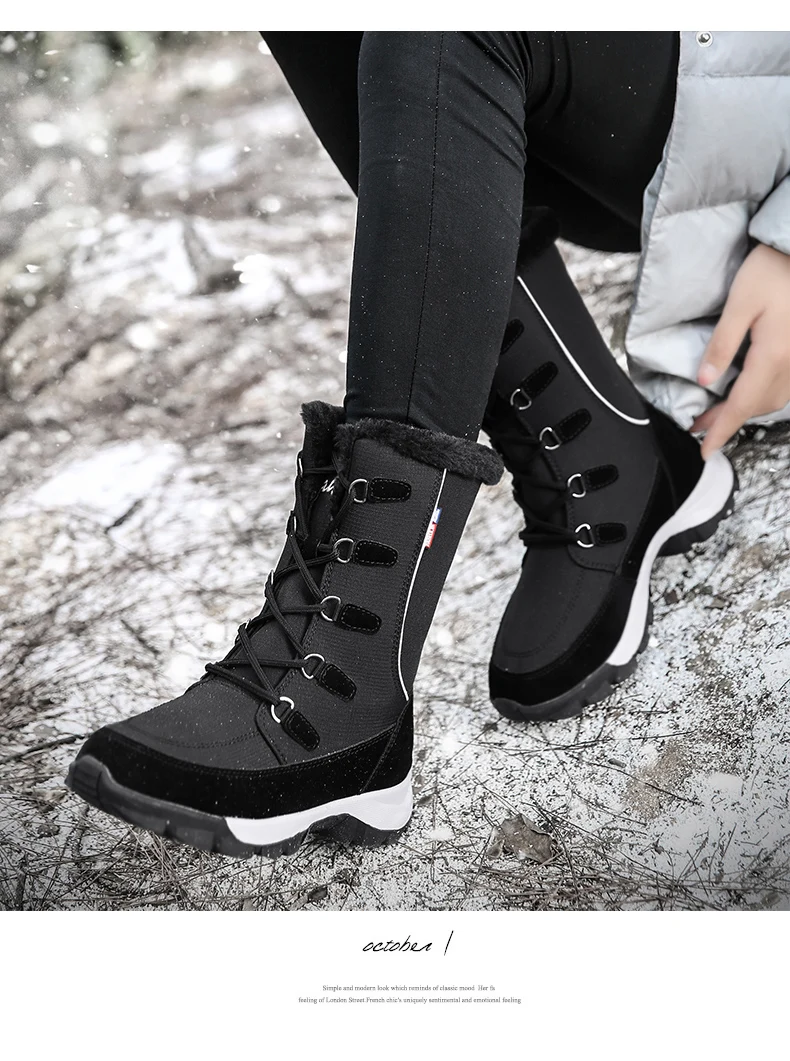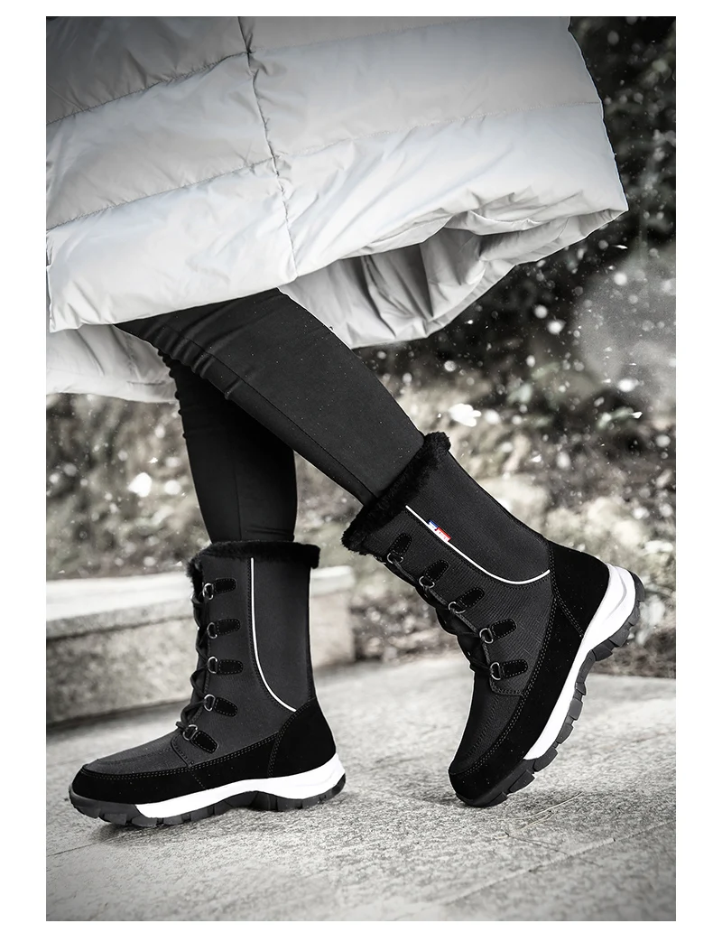 Женские ботинки на платформе, зимние теплые ботинки с плюшевой подкладкой, Нескользящие, модная зимняя женская обувь, зимняя обувь