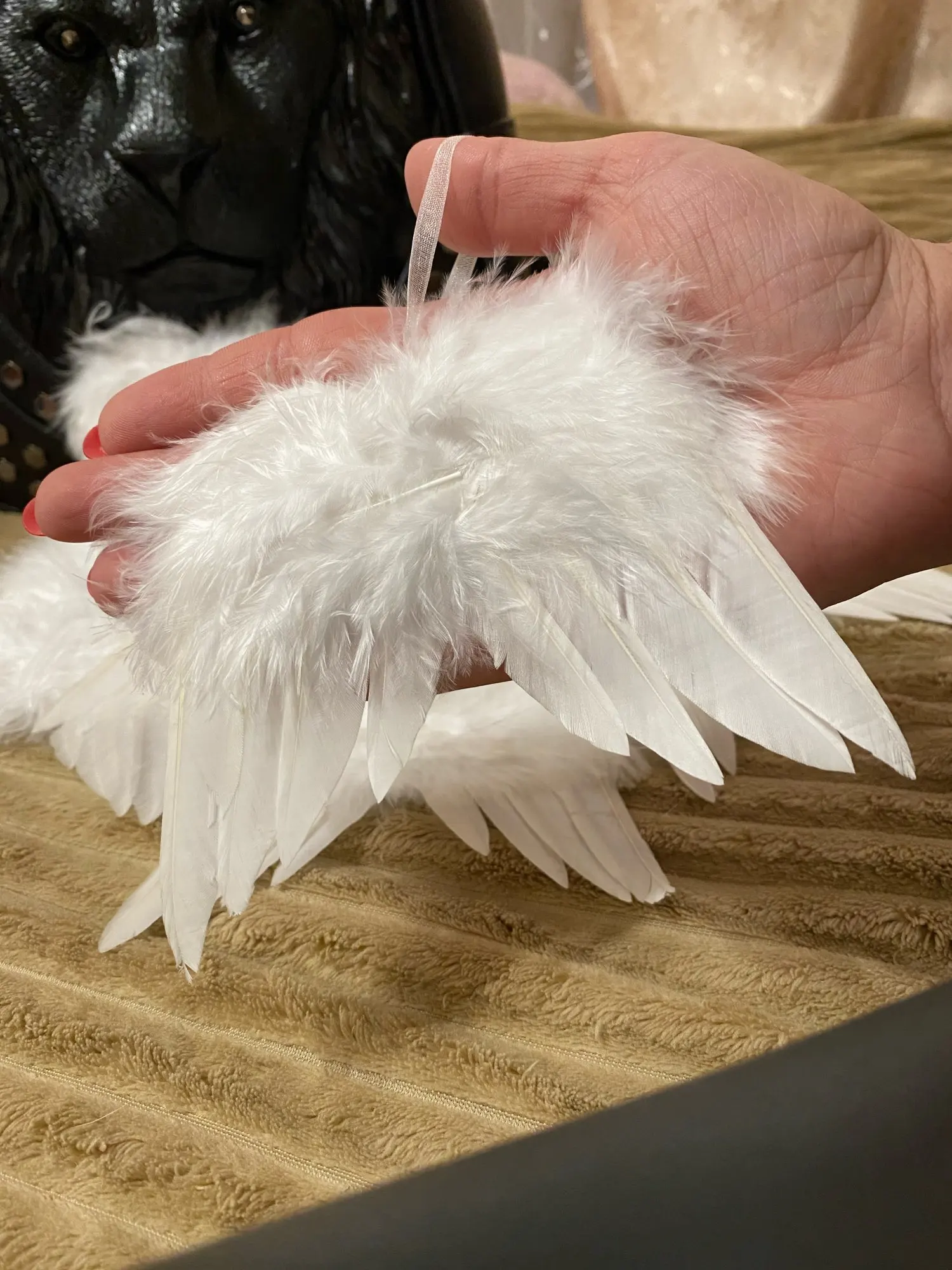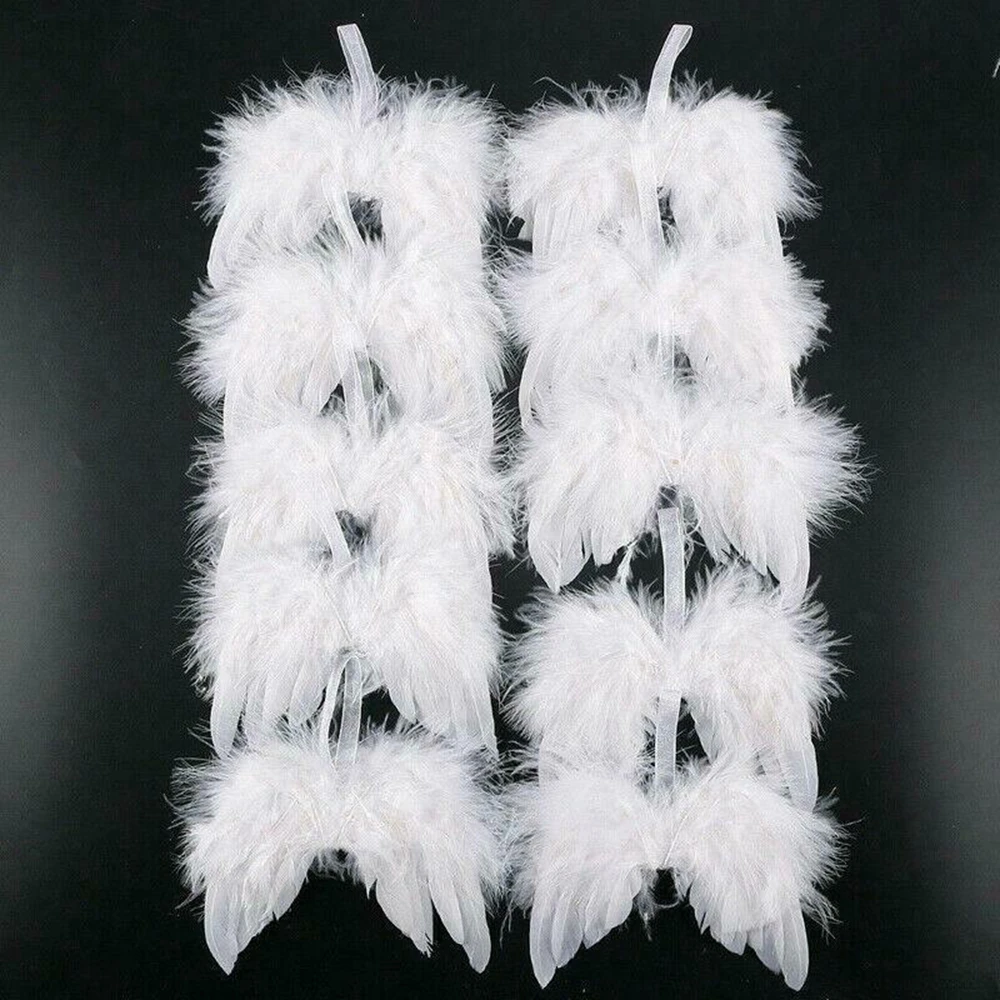 Украшение для рождественской елки, с белыми перьями и крыльями, 10 шт.