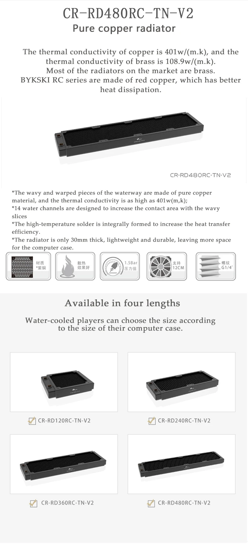 Bykski CR-RD480RC-TN-V2 PC водяное охлаждение G14, медный 480 мм ра...
