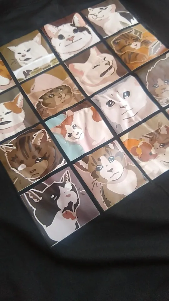 Футболка хорошего качества, при аккуратной стирке принт должен держатся, в некоторых котиках не пропечатан глаз, но общую картину не портит)