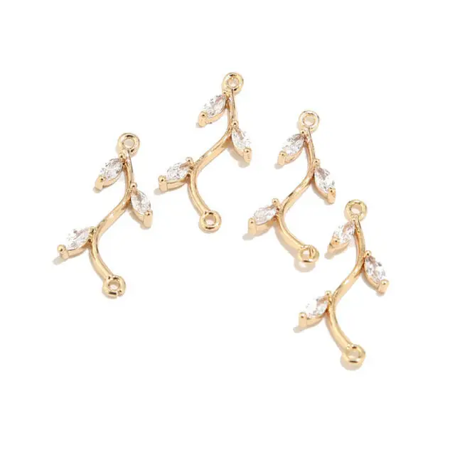5 шт.лот позолоченная латунь Цирконий кристалл в форме листьев соединители для самостоятельной сборки ювелирных изделий ожерелья браслетов фурнитура для изготовления аксессуаров