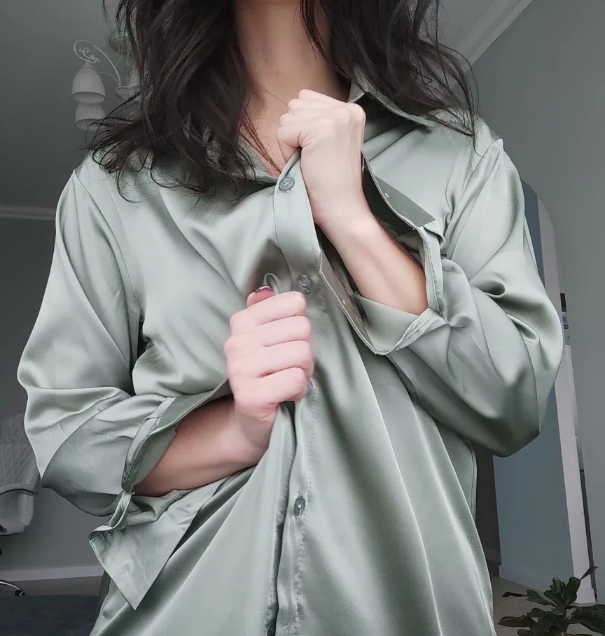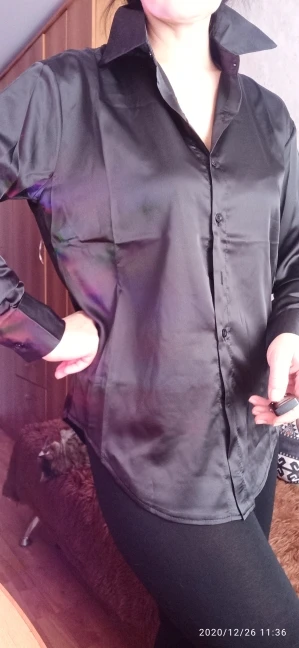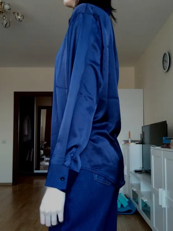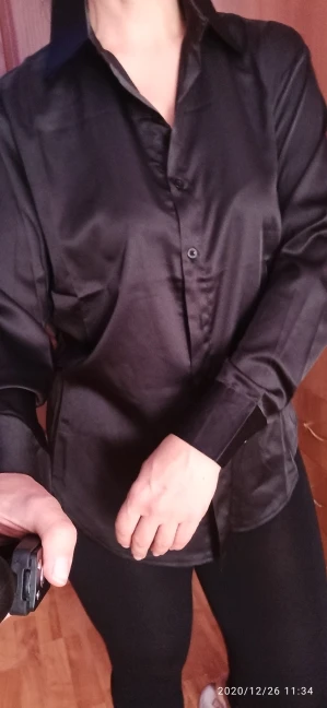 Очень неплохая рубашка. Выглядит прилично, нитки не торчат. Гладится не слишком легко, если попадет вода, останутся разводы, но это минус всех атласных вещей. А в целом мне очень нравится. Размер S на параметры 86*64*94 сел хорошо.