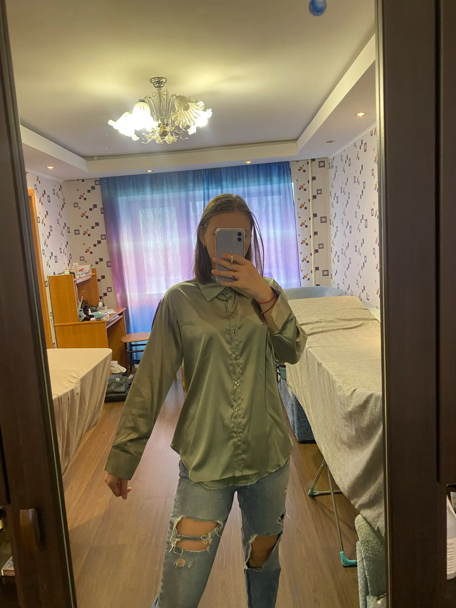 мне очень понравилась рубашка, размер подошёл идеально, цвет нежно оливковый приятно к телу доставка быстрая , спасибо продавцу