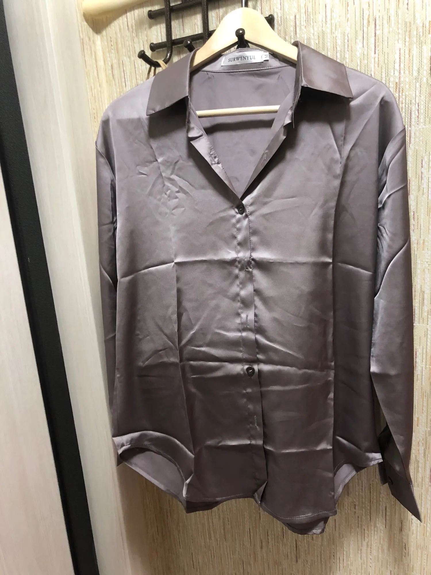 Осенняя модная атласная шелковая рубашка на пуговицах, винтажная блузка, женская белая, с длинным рукавом, женские свободные уличные рубашки, 11355