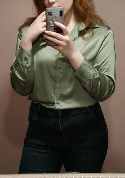 Блузка хорошая, пришла быстро! Очень красивый, приятный зелёный цвет. По размерам - на рос 44-46 взяла L, спокойно можно было и М брать, блуза достаточно свободная. И с ней надо быть очень аккуратной, хватануть затяжку легко! И от воды остаются разводы