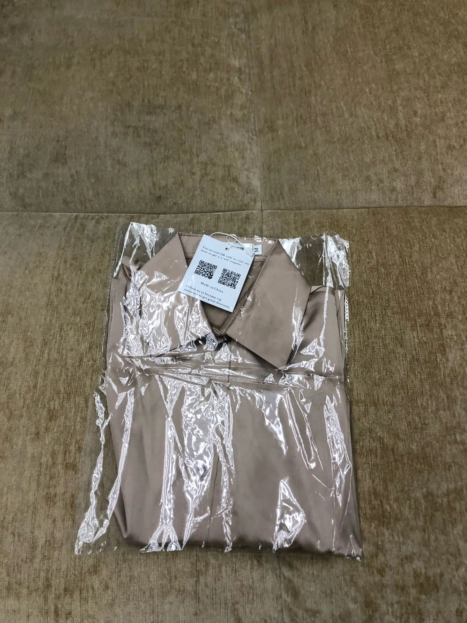 Заказ сделан был 04.02.21, получила 19.02. Трек номер отслеживается. Упакован был аккуратно. Полностью соответствует описанию продавца. Ткань Синтетика сделана под атлас, Приятная к телу. Пуговицы пришиты хорошо. Качество хорошее. Размер S сидит свободно на вес 54, Ог 84, рост 169.