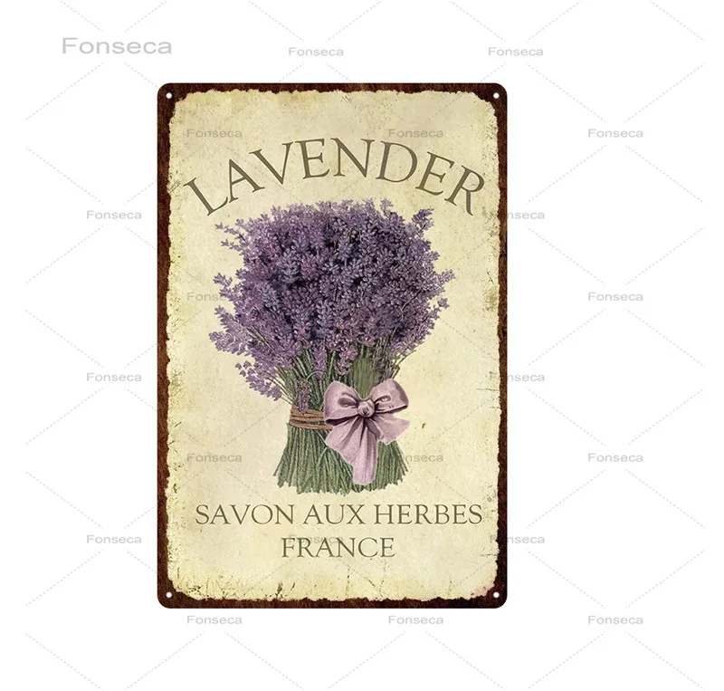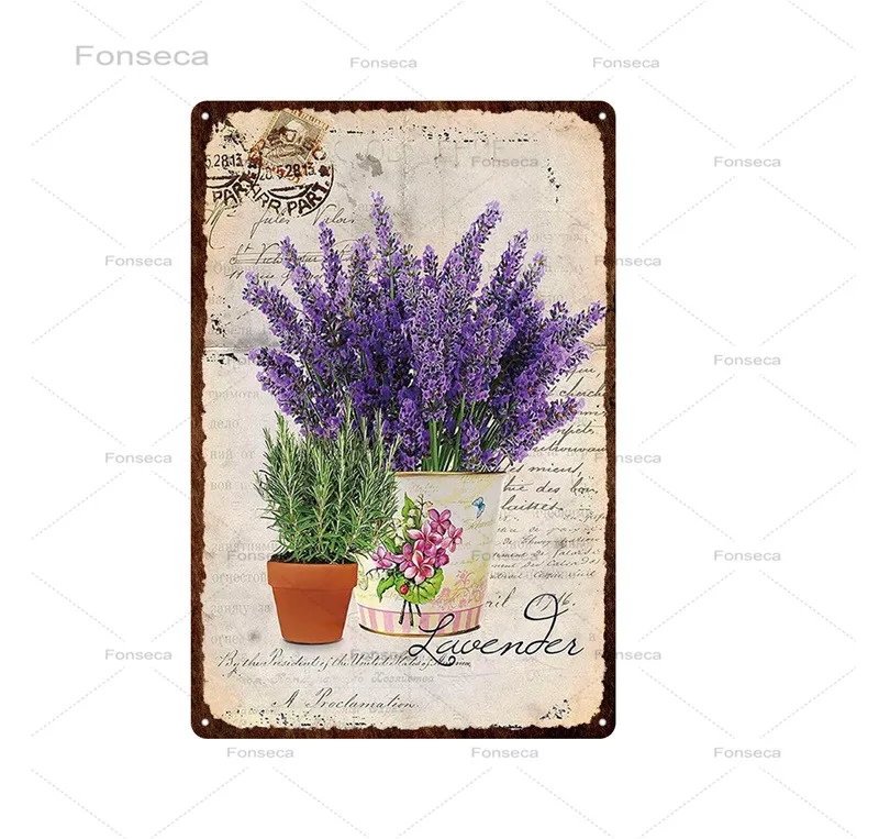 Винтажный металлический жестяной плакат в стиле ретро с лавандовым ...