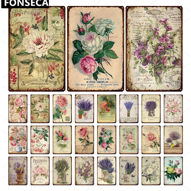 Винтажная жестяная вывеска с цветами, домашний декор, ретро металли...