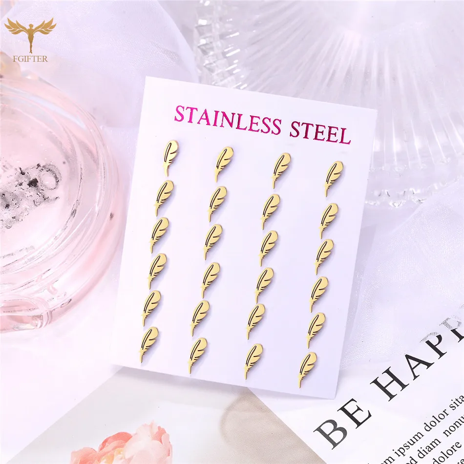 Серьги-гвоздики женские, из нержавеющей стали, золотистые, 12 пар