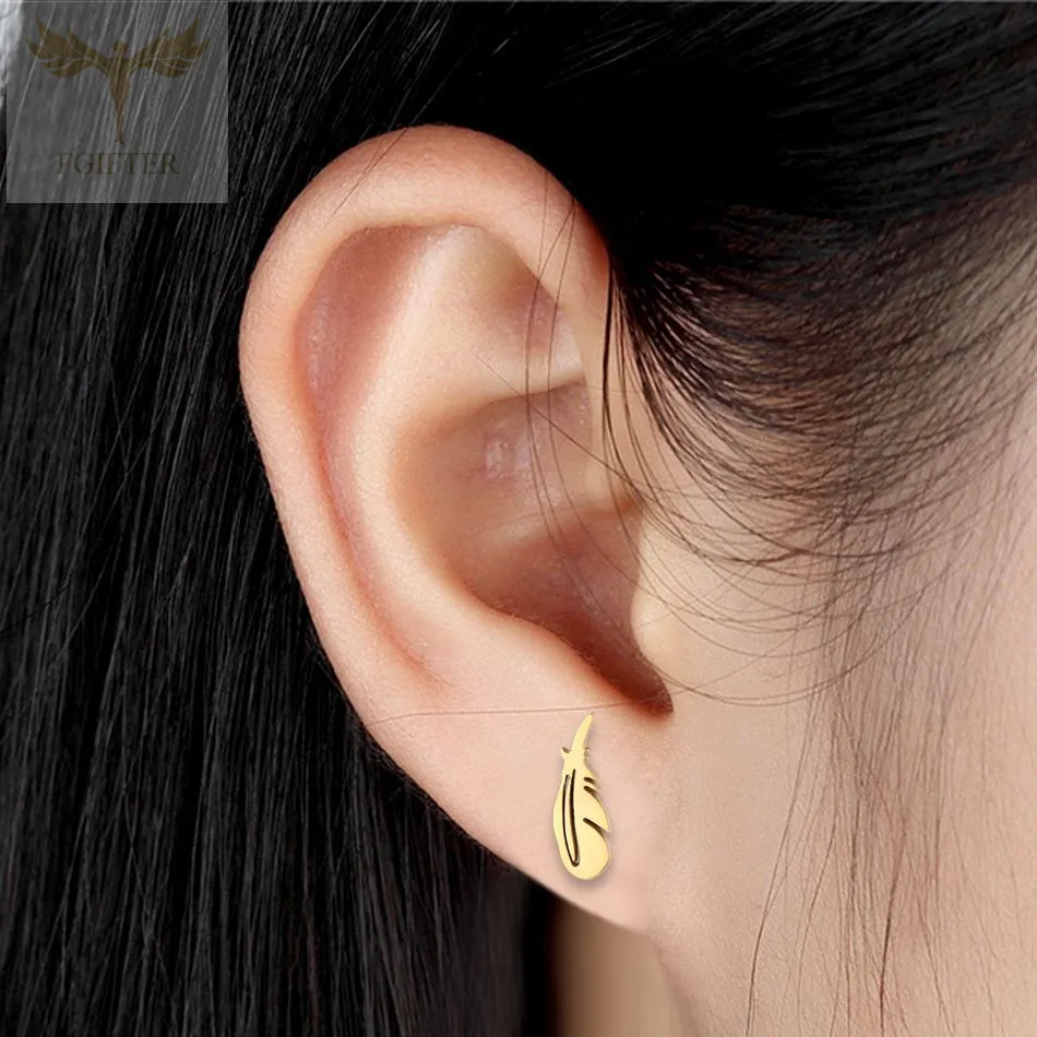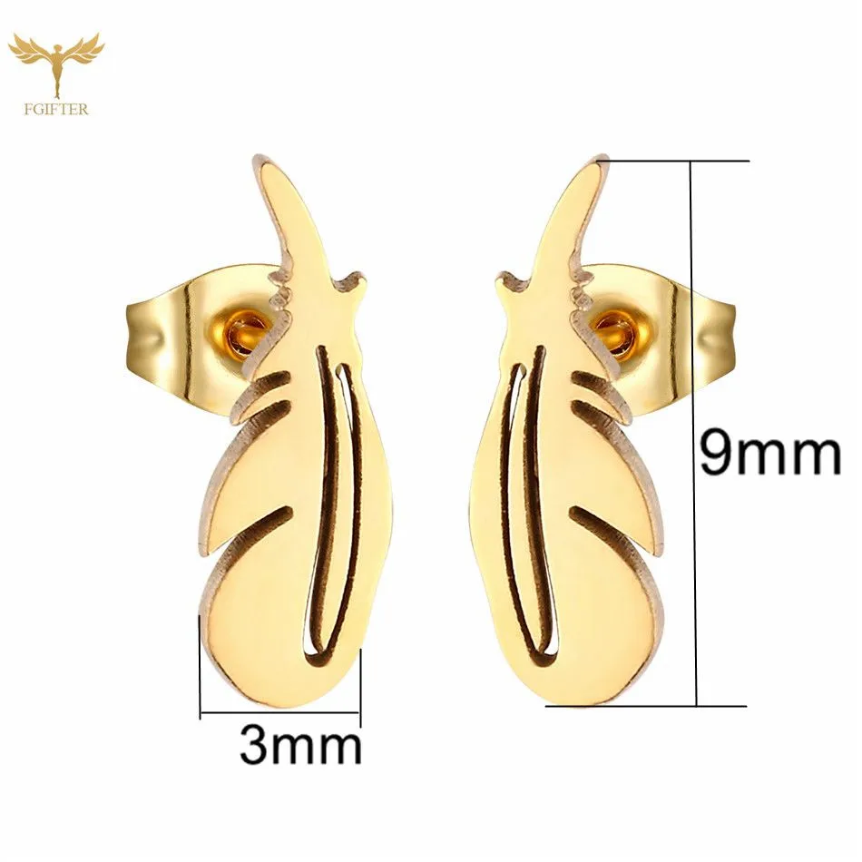 Женские серьги с перьями, мужские серьги-гвоздики из нержавеющей ст...