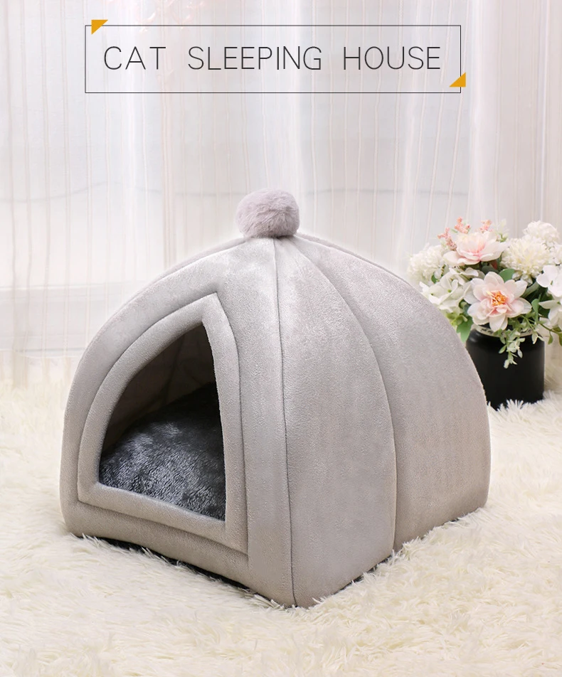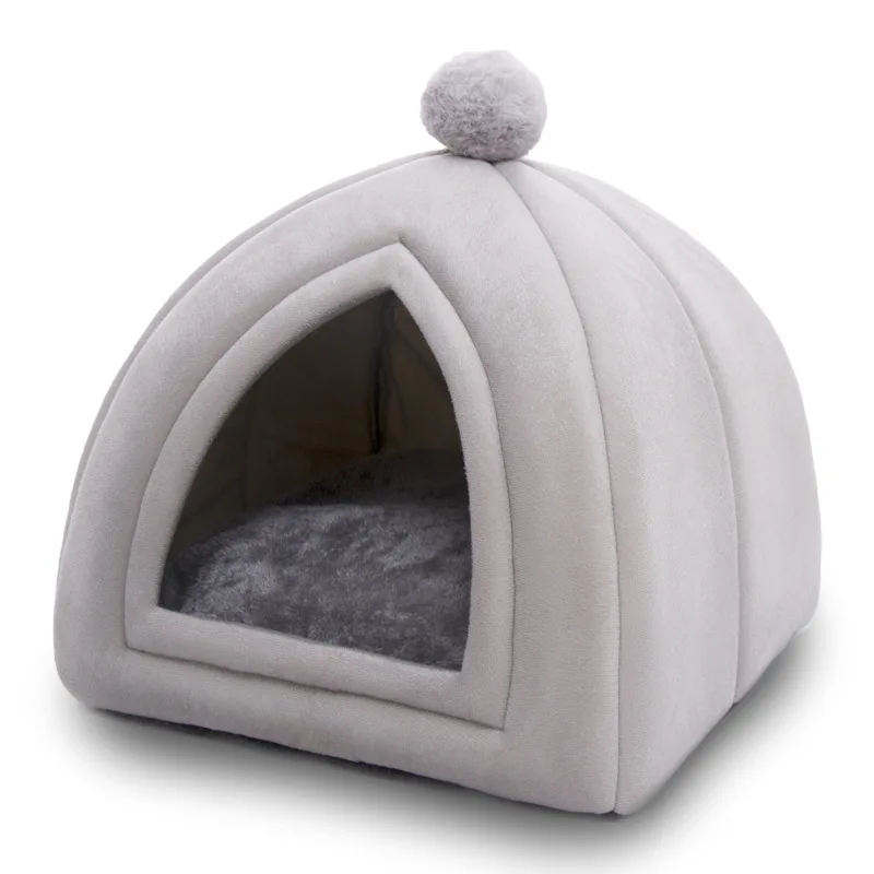 Зимняя теплая домашняя кровать для домашних животных, мягкая складная нескользящая Нижняя палатка для домашних животных, съемная моющаяся палатка для кошек, гнездо для щенков, питомник для собак