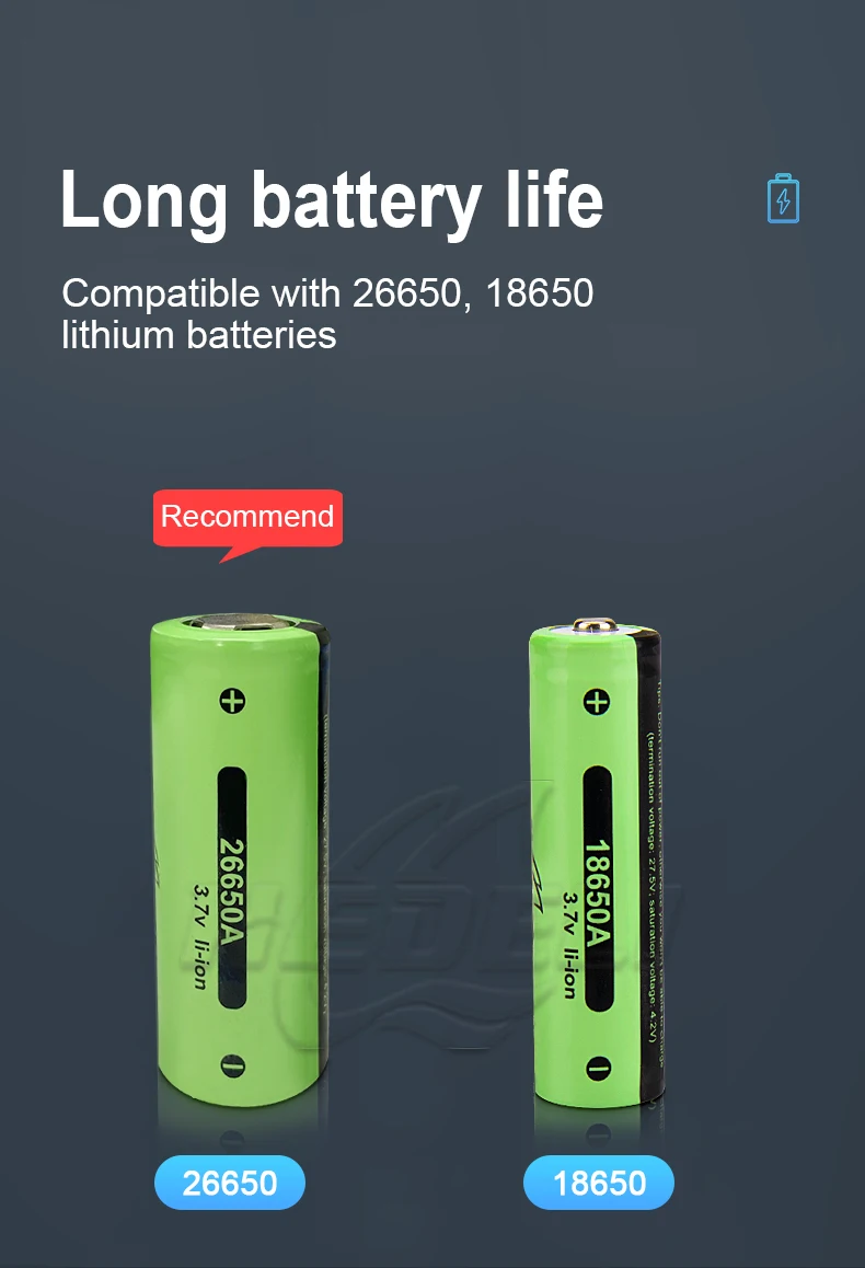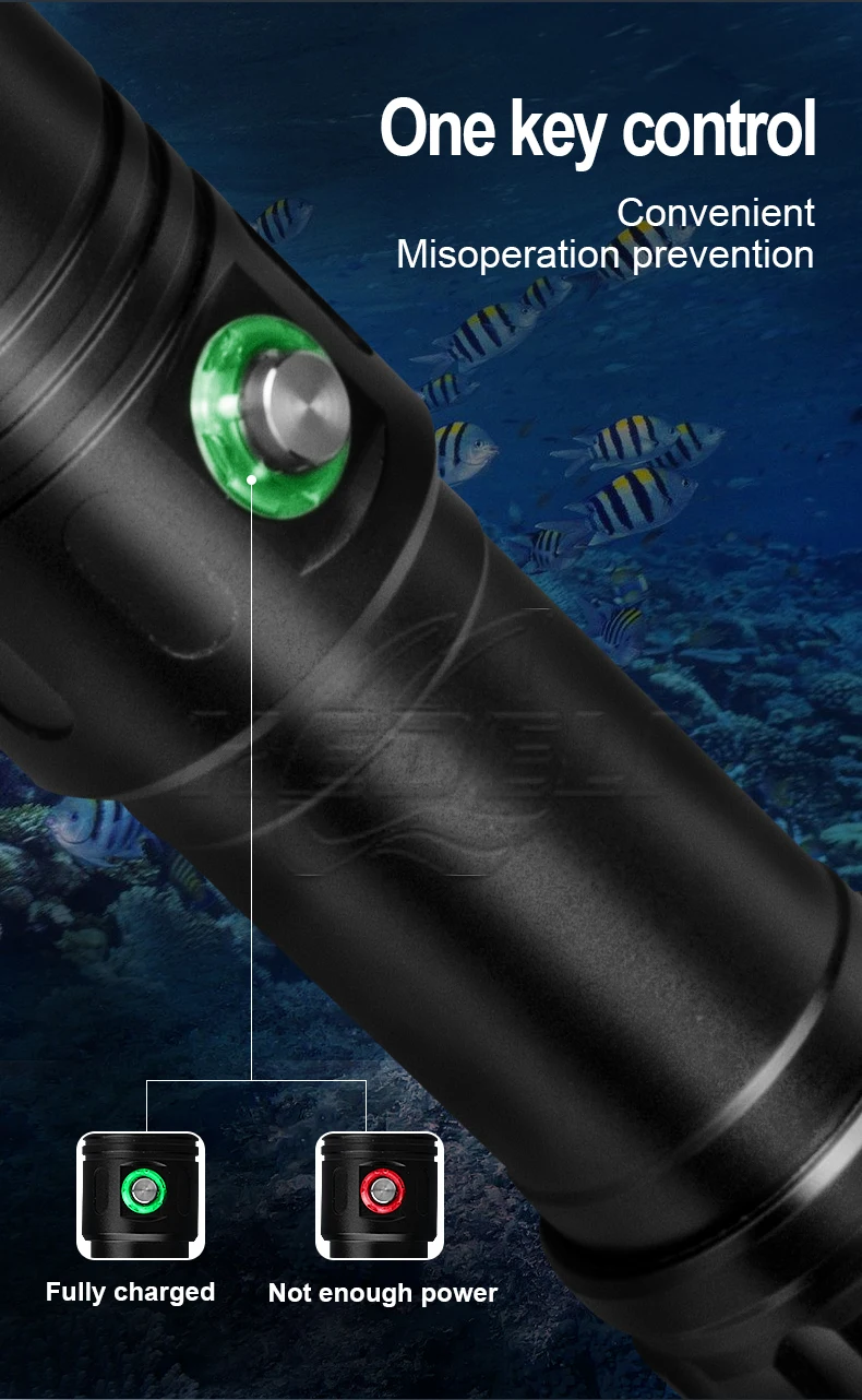 》 Характеристики продукта 》• Профессиональный фонарик для дайвинга с возможностью погружения на глубину до 100 м• Специальное предупреждение о заряде аккумулятора для лучшего понимания ситуации с аккумулятором• Используется новейший светодиод XM-L XM-L2• Постоянный ток, 4 режима затемнения для различных случаев.• Используйте 1 перезаряжаемый аккумулятор 18650 или 26650, батарея работает дольше на 26650• Высокоэффективная печатная плата обеспечивает до 50 часов работы при минимальном выходном уровне• Изготовлен из надежного алюминиевого сплава класса aero HAIII, армейского класса, твердоанодированный• Конструкция с защитой от быстрого доступа предотвращает случайное повреждение внутренней электроники》 Параметры изделия 》