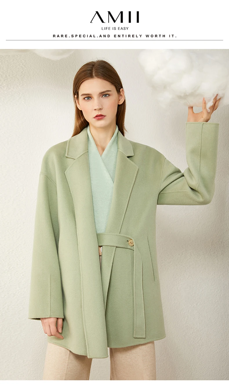 Женское шерстяное пальто Amii Minimalism, однотонное двустороннее шерстяное пальто из 100% шерсти, зимнее пальто, 12020344