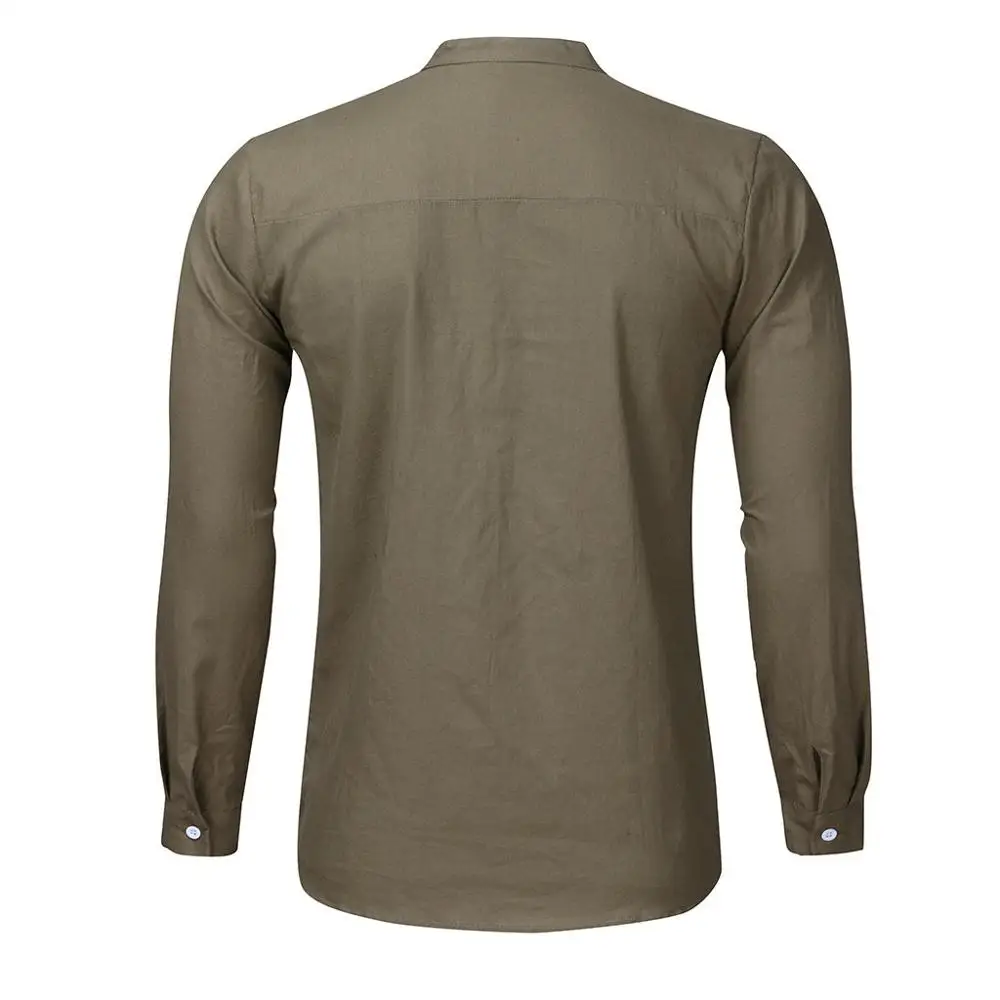 Рубашка мужская Свободная с длинным рукавом, хлопок и лен, Повседневная дышащая удобная, модная Стильная однотонная, лето 2020