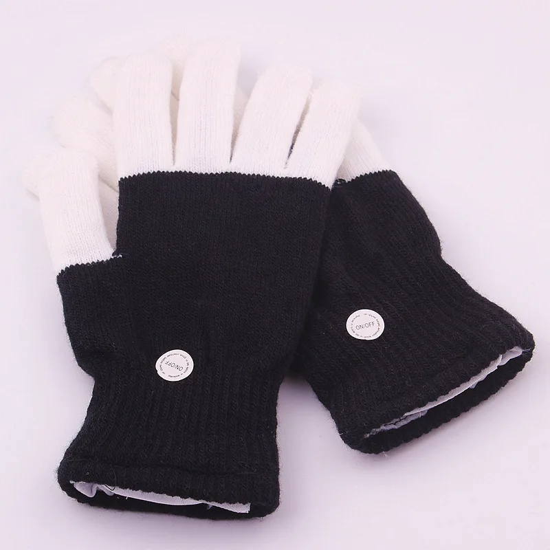 Черно-белые перчатки со светодиодной подсветкой, перчатки с блестка...