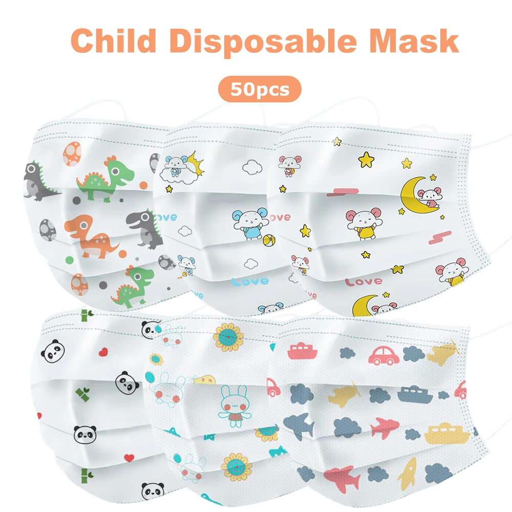 50 шт. одноразовая детская маска 3-слойная мультяшная Нетканая детская Пылезащитная дышащая хирургическая маска медицинская маска детская маска для лица