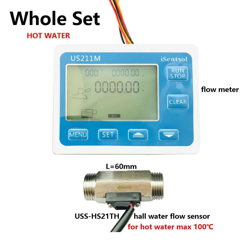 Набор горячей воды US211M цифровой расходомер воды с SUS304 нержавеющая сталь USS-HS21TH 1-30 лмин датчик расхода воды в холле