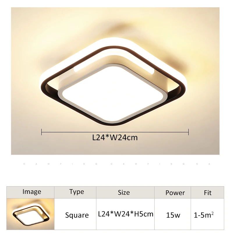 1. Название: светодиодный потолочный светильник2. Размер: L24 * 24 см3. Мощность: 15 Вт4. Площадь: 2-5 м25. Материал: ПВХ + акрил, алюминиевый сплав6. Вход: 110 В 220 В] 7. Применение "светильник коридора, светильник балкона