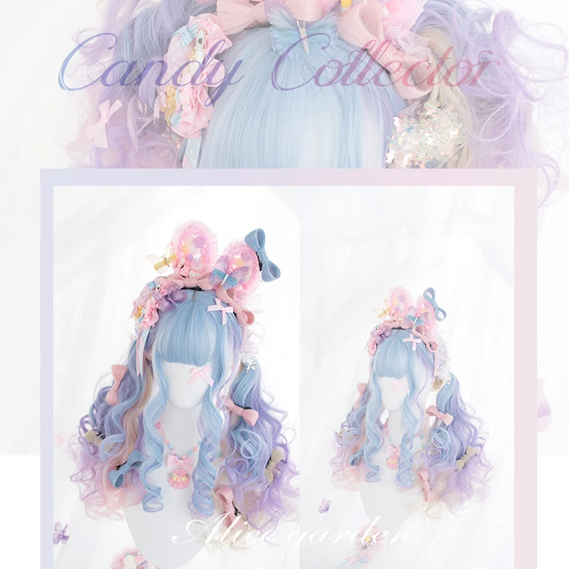 Парик сладкой конфетно-фиолетовой синей розовой Лолиты Kawaii Harajuku фея косплей челки вьющиеся длинные волосы для вечерние девушек