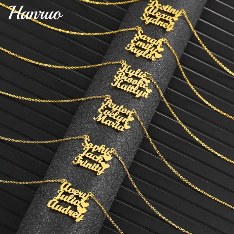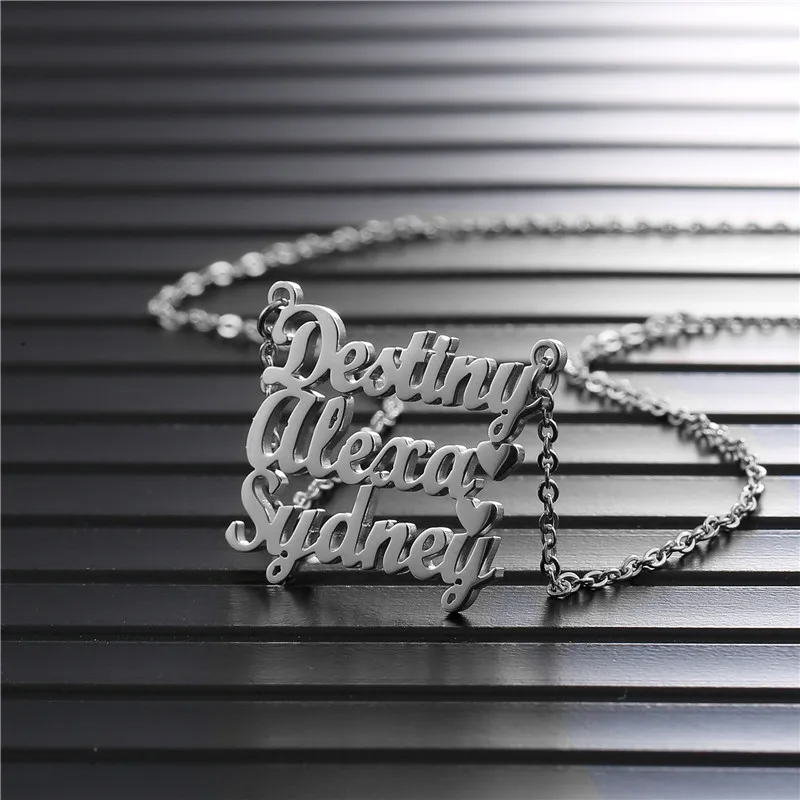 Персонализированные 3 имени ожерелье из нержавеющей стали семейное Сердце ожерелье s пользовательское имя колье ювелирные изделия друг семья BFF