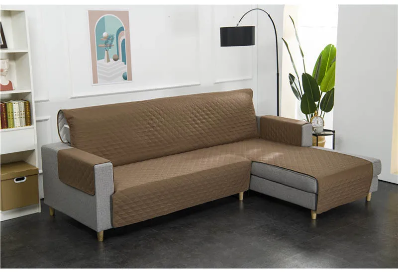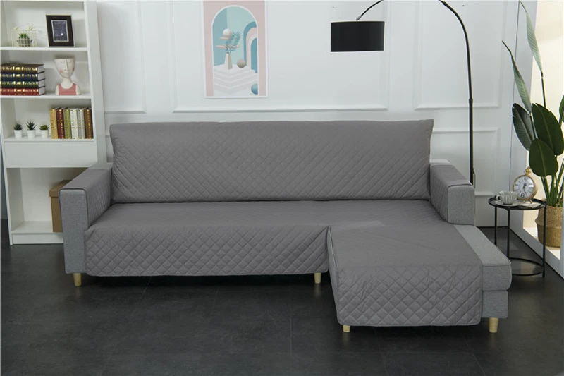 Чехол для дивана, L-образный, для гостиной, однотонный, стеганый