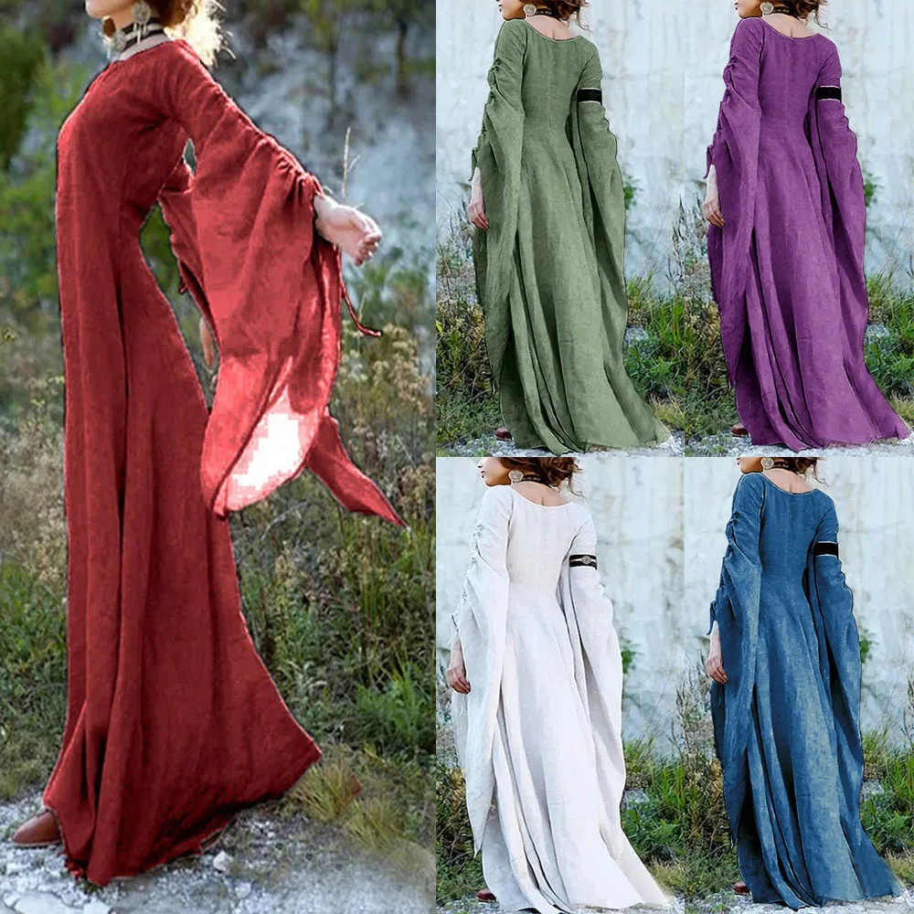 Женское платье в пол, средневековое готическое платье с длинным рук...