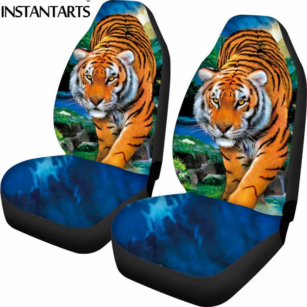 Автомобильные чехлы INSTANTARTS, универсальные защитные чехлы на передние сиденья с леопардовым принтом тигра и 3D принтом животных