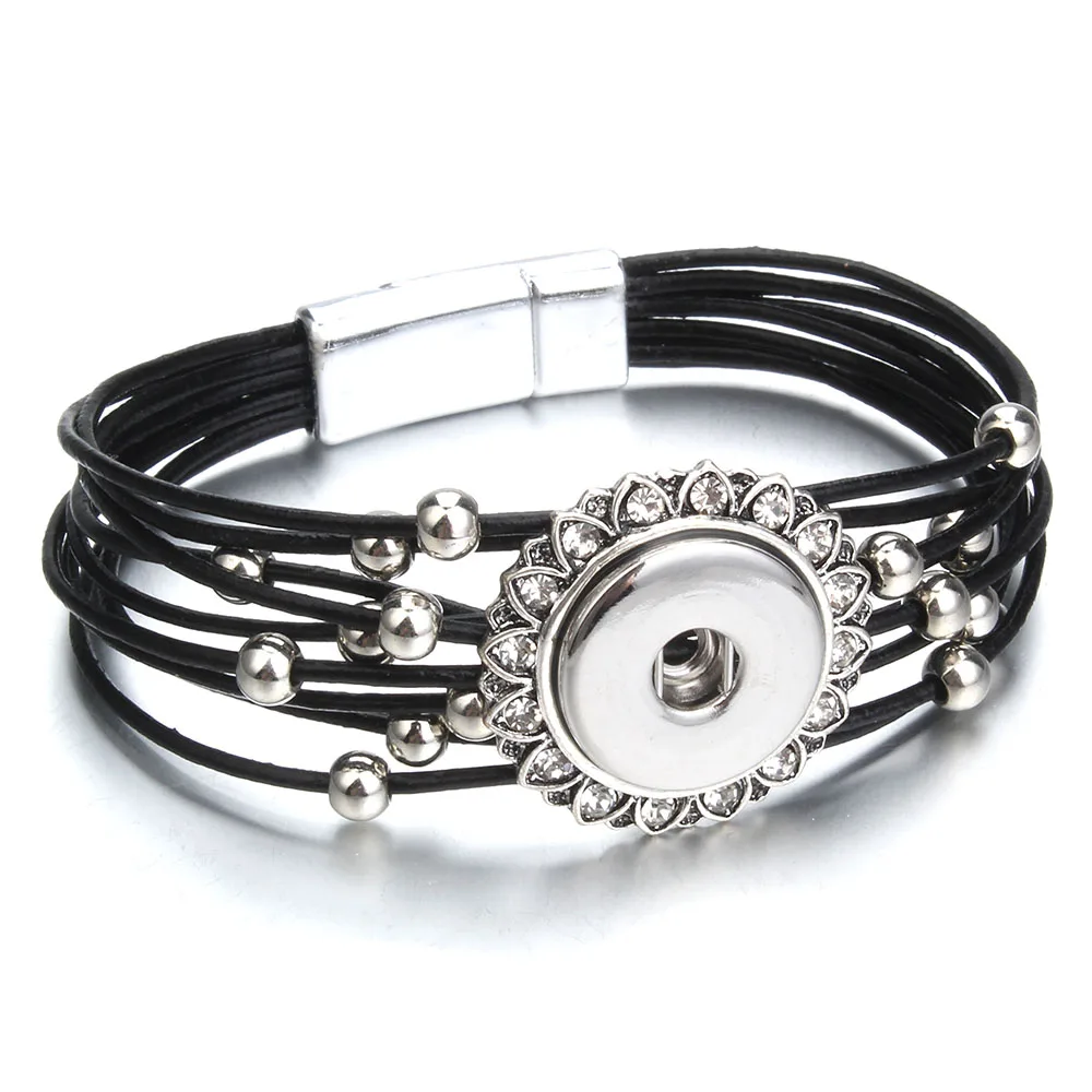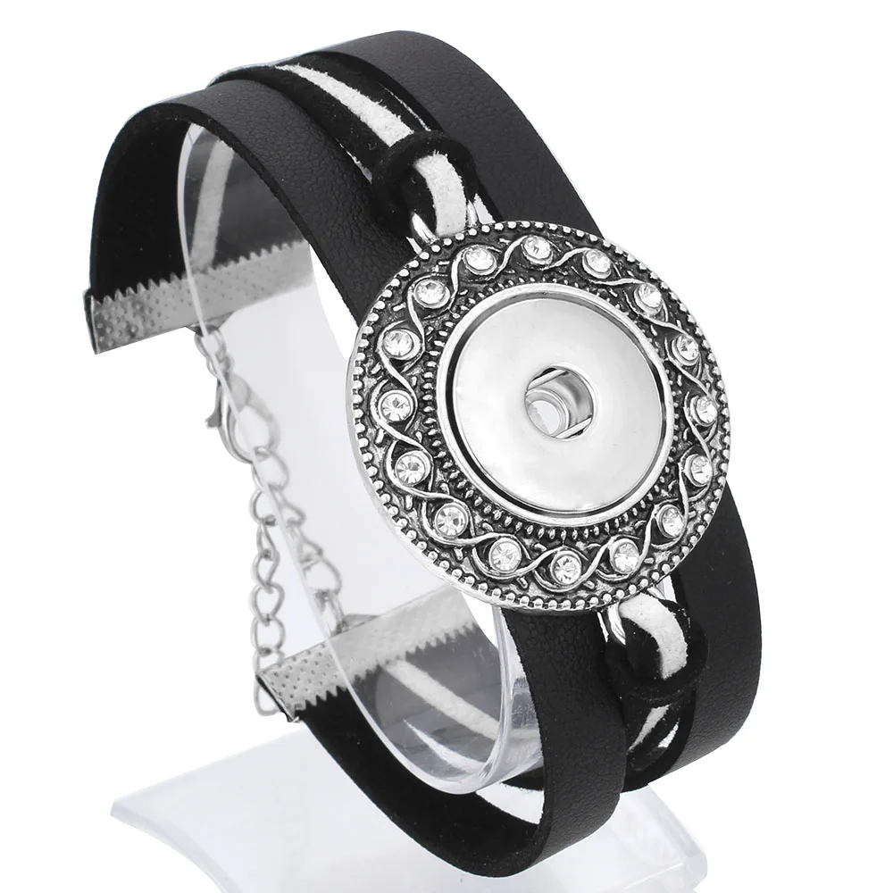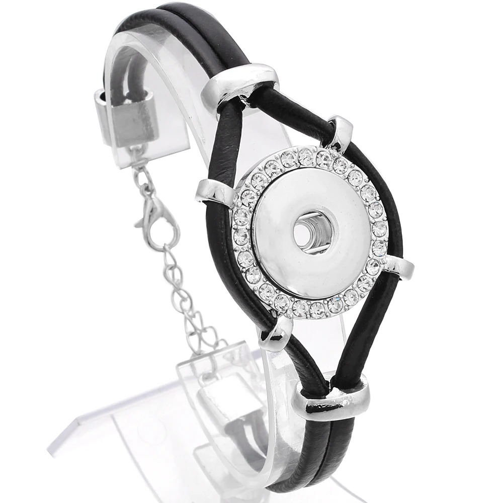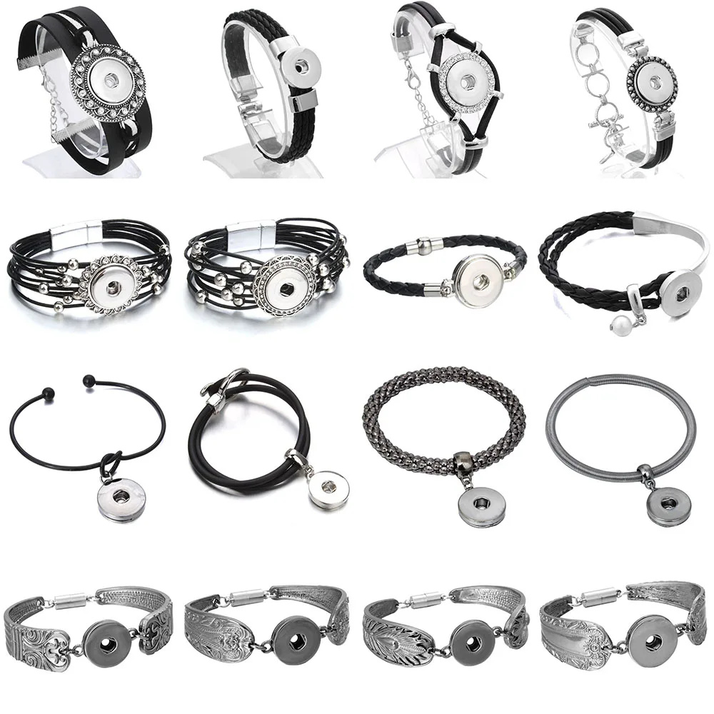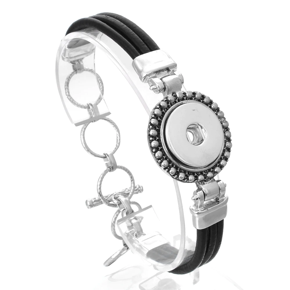 Браслеты из черной кожи, металлические, 18 мм, ювелирные браслеты с защелкой бусин