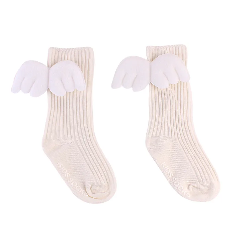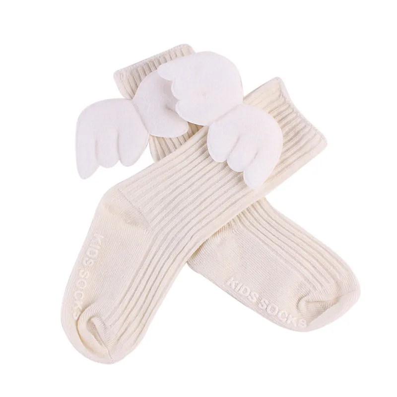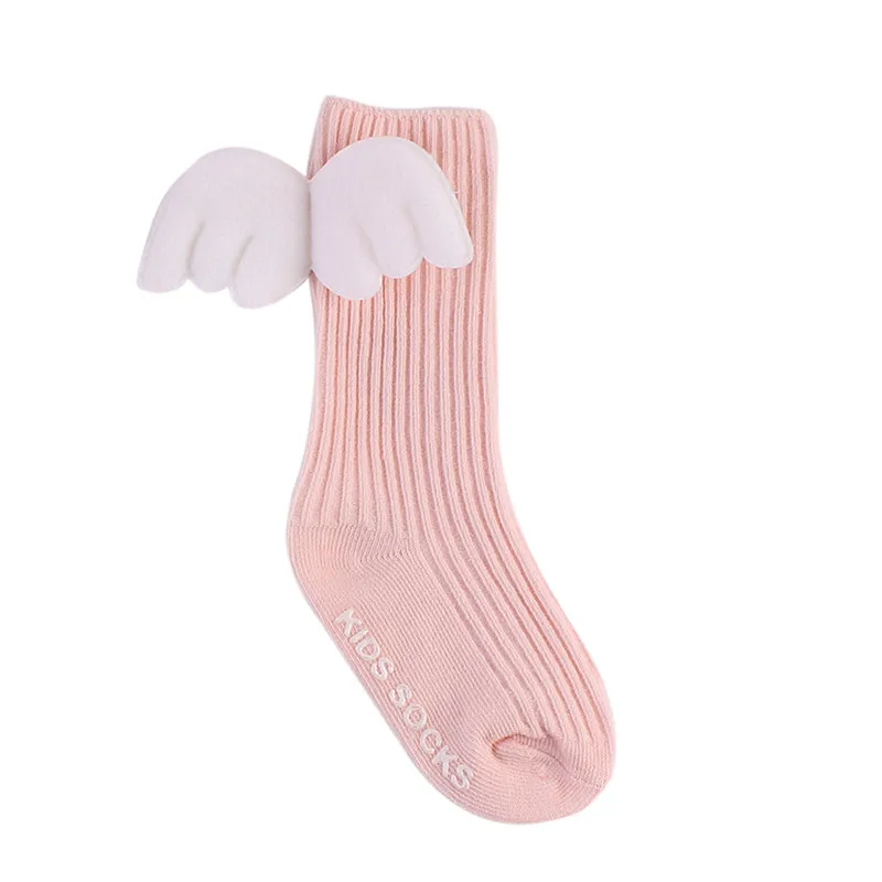 Длинные гетры до колена; Детские носки для новорожденных 0-4 лет; Мягкие хлопковые кружевные носки принцессы с крыльями ангела для маленьких девочек; M0147