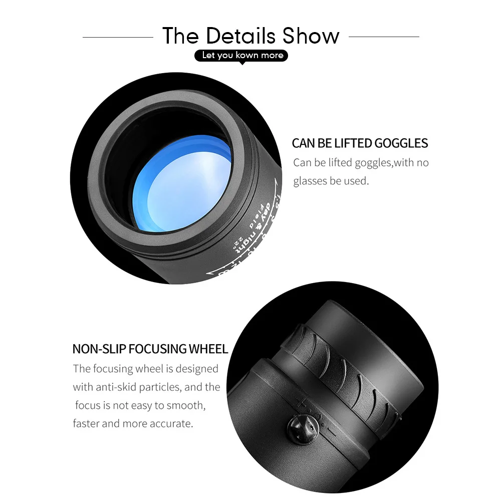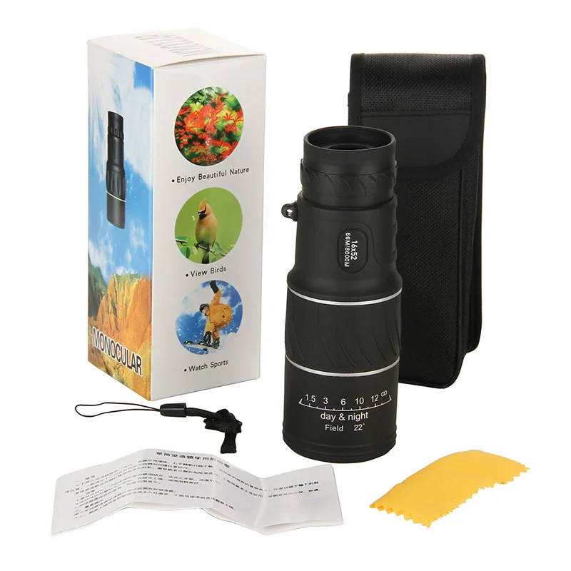 Монокулярный бинокль 16х52, портативный бинокль высокого качества, дальность 668000 м, материал пластик, цвет черный, для наблюдения на открытом пространстве