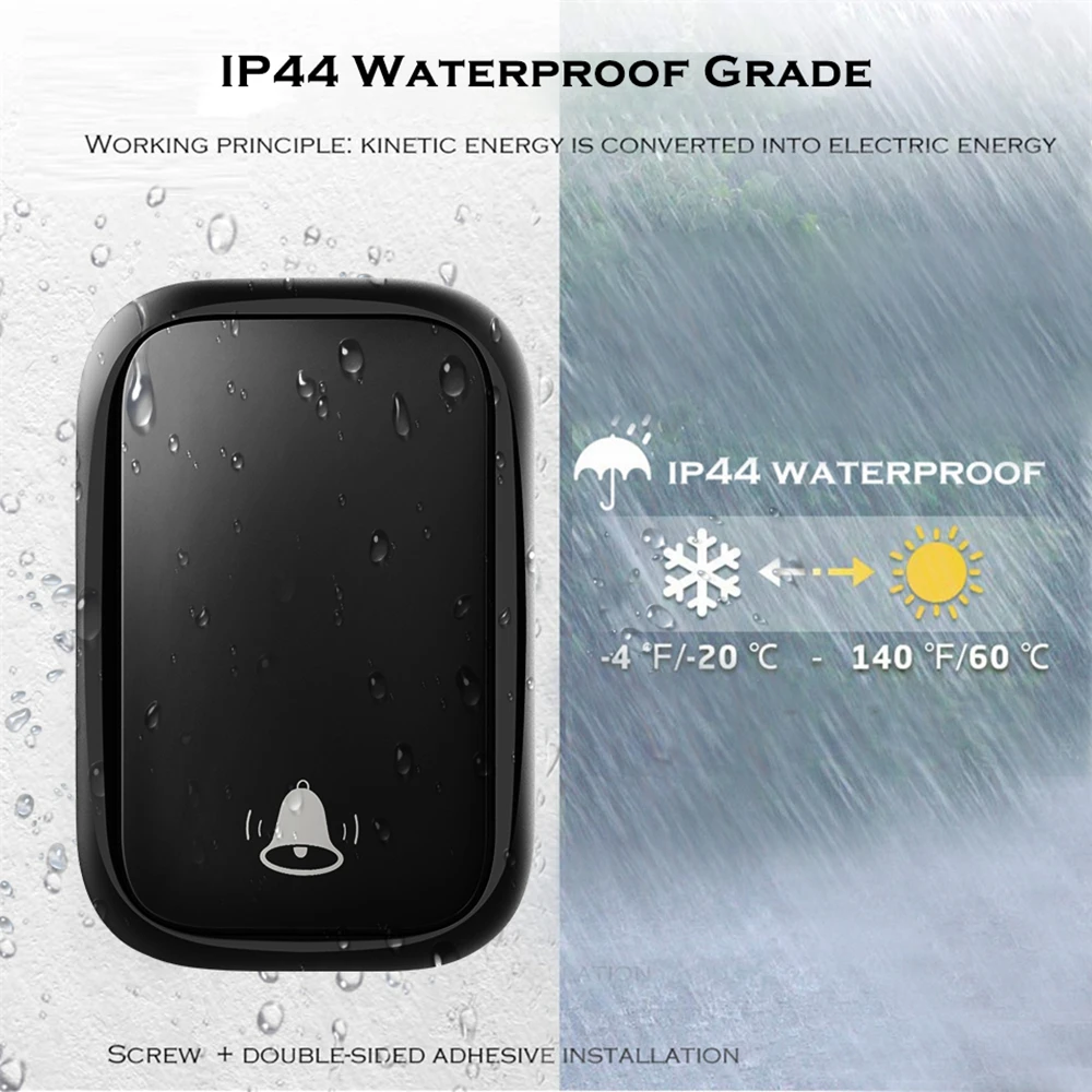 Водонепроницаемый дверной звонок CACAZI, автономный беспроводной дверной звонок, не требует батареек, 60 музыкальных сигналов, 0-110 дБ, вилка стандарта США, ЕС, Великобритании