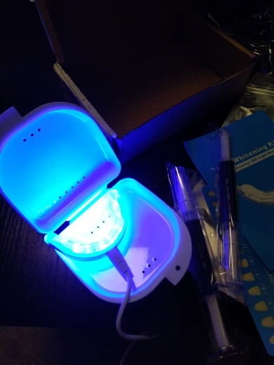 Отличные набор, всё работает, моя комплектация включала лампу, адаптер, индивидуальный кейс, два отбеливающих карандаша, инструкцию на английском (всё понятно с картинками) и палитру оттенков эмали. Упаковано очень хорошо в картонной коробке, ничего не помялось, не повредилось. Покупала с хорошей скидкой (ок. 570₽). Лампа шла ок. трёх недель, посылка отслеживалась на всем протяжении. Я очень довольна, выгоднее не купить, продавцу большое спасибо! Тестить буду позже, позднее дополню отзыв.