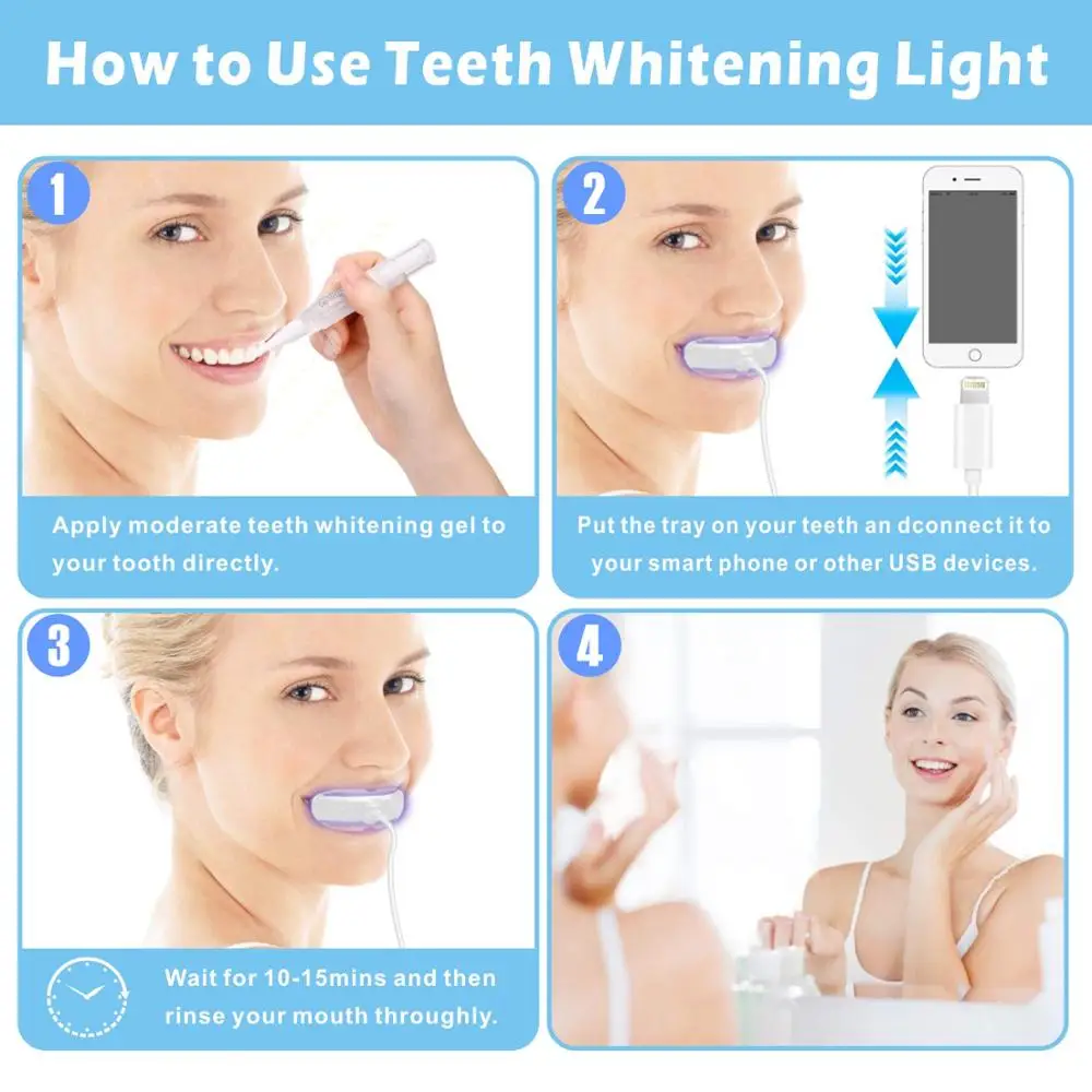 Профессиональный набор для отбеливания зубов 16x ускоритель светло-синие светодиодные полосы свет концентрированный пероксидный гель ротовой лоток лампа