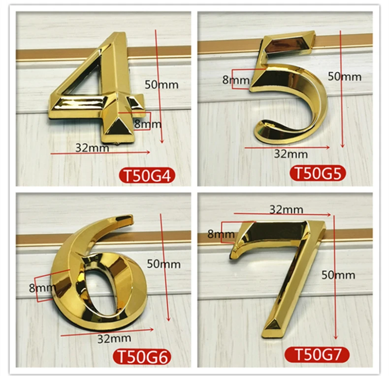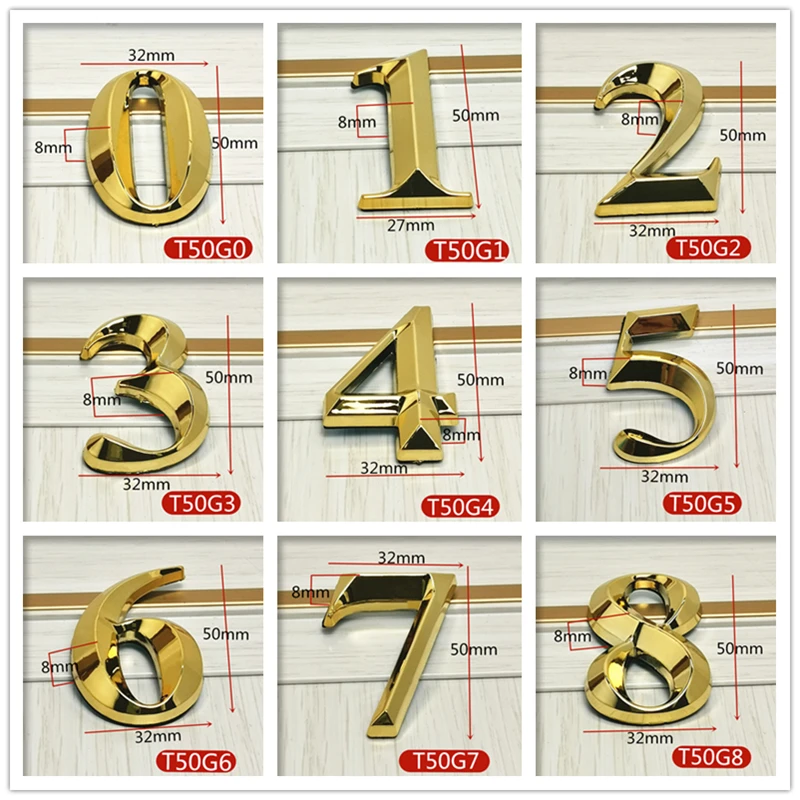 Табличка на дверь, 5 см, наклейка на номер дома, золотой цвет, номера адресов в квартире, почтовый ящик из АБС-пластика, Номера для отелей, номера этикеток 3D цифры на дверь почтовый ящик уличный почтовый ящик дом номе