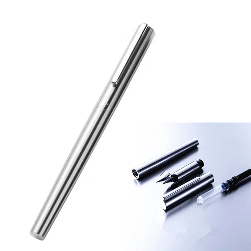 Перьевая ручка Jinhao, из нержавеющей стали, с тонким пером, в стиле ретро, серебряная, для студентов, офисных тренировок, канцелярские принадлежности, подарок