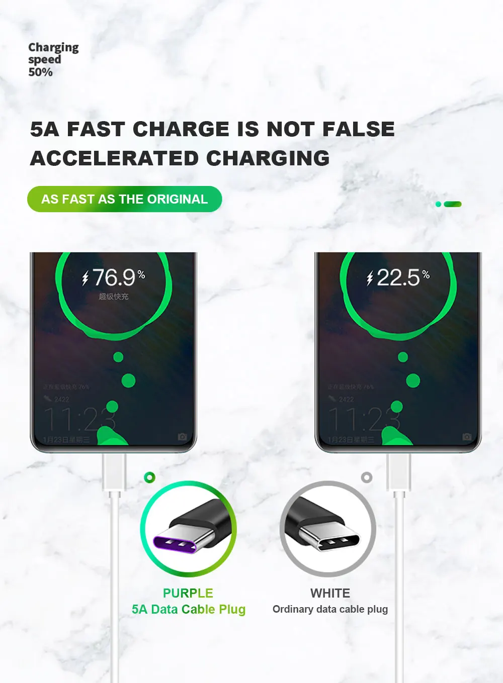 Кабель USB Type-C 5A для Huawei P30 Mate 30 Lite Xiaomi Redmi Note ...