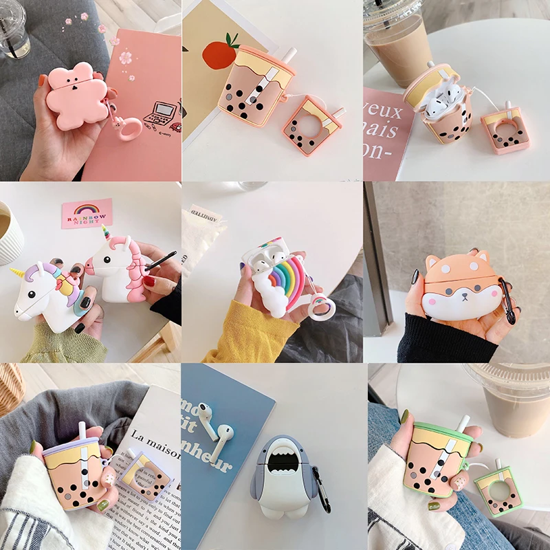 Силиконовый чехол для беспроводных наушников Apple Airpods 1, 2, с изображением единорога, чая с молоком, защитный футляр